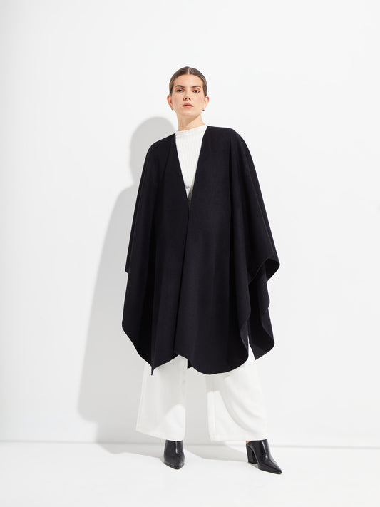 Zibelin Cape in black tone, with an open design and enveloping silhouette. Crafted from a...