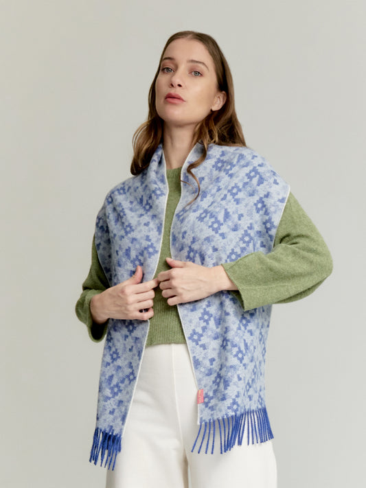 Zamery Scarf in blue tone, featuring a large checkered pattern with a subtle gradient effect....