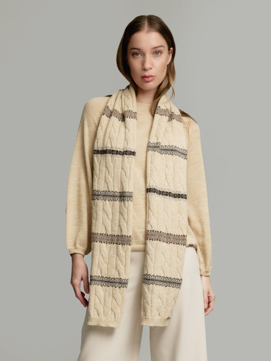 The Ysadora scarf stands out for its Jacquard weave and for being made of baby...