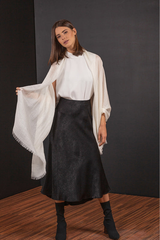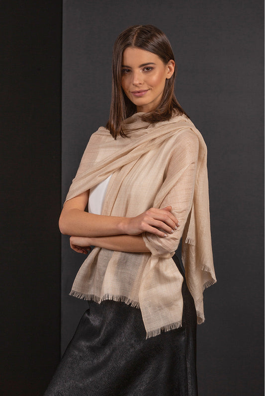 Our sophisticated Borisette pashmina, made from the superior Royal Alpaca fiber and silk, is part...
