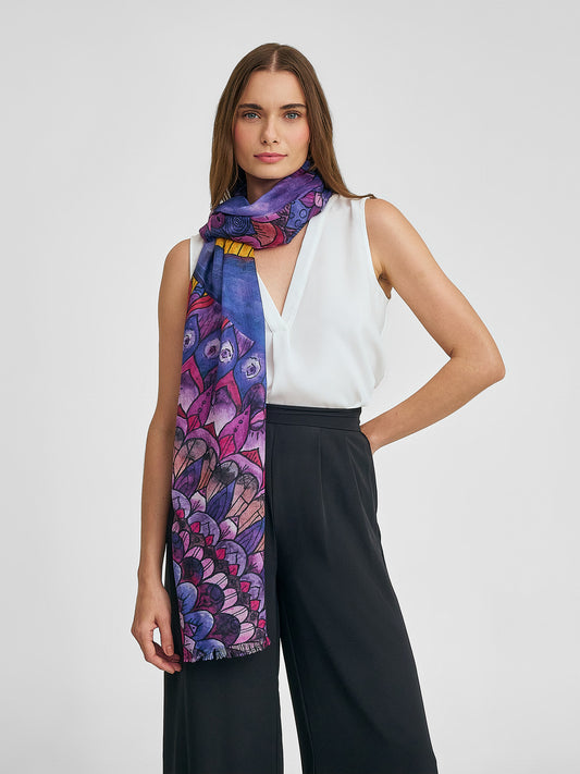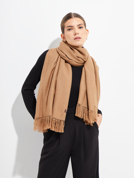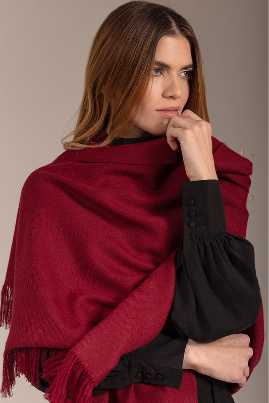 Soft royal alpaca stole with long bangs on the sides. A versatile and lightweight accessory...
