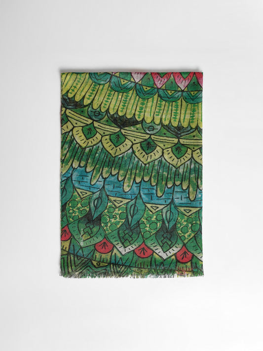 Teaberry Stole in green tone, featuring a solid color and fine fringed edges that provide...