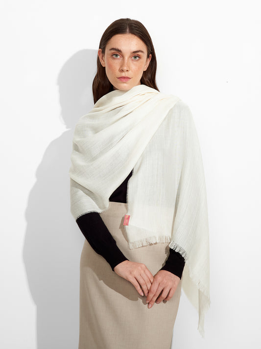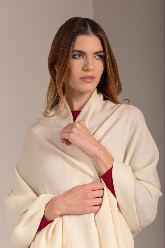 Teaberry B Stole in ecru tone, in a solid color design, featuring fine fringed edges...