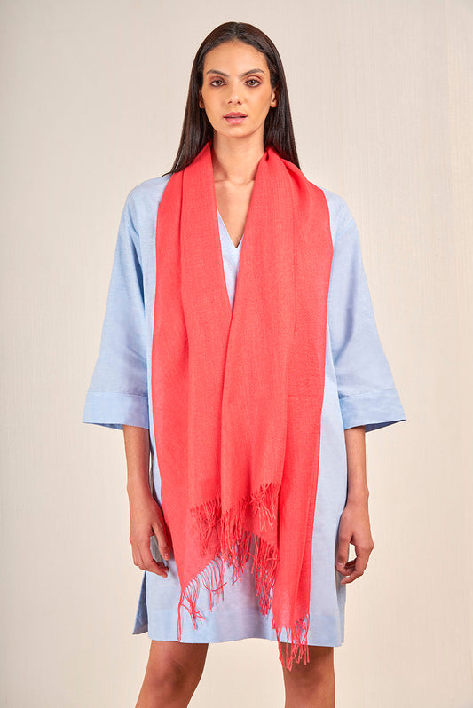 Teaberry Stole in orange tone, featuring a solid color and fine fringed edges that provide...