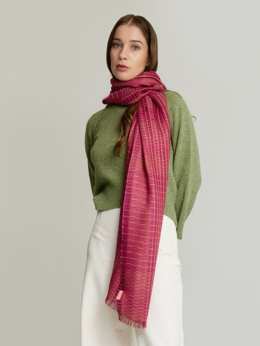 Our colourful Verso shawl is made of baby alpaca and silk and inspired by beautiful...