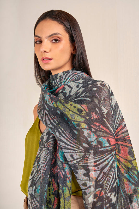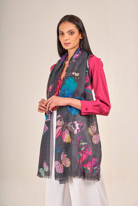 Exclusive shawl made of the finest baby alpaca and silk fibres. The beautiful butterfly design...