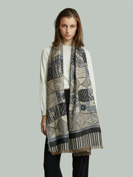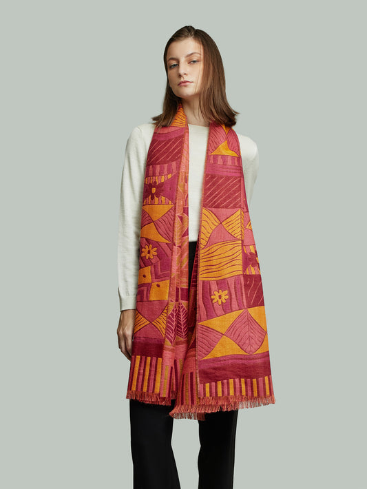 Zulett Stole in multicolor, featuring a jacquard weave with an irregular line design and fine...