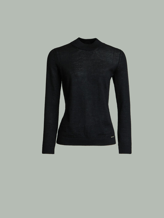 Abril sweater in black, made of 100% baby alpaca. It features a classic full-color design,...