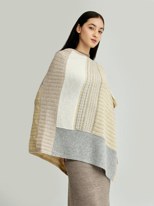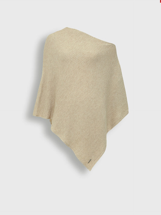 Zegovia Poncho in beige tone, featuring horizontal stripes and a loose-knit design that offers a...