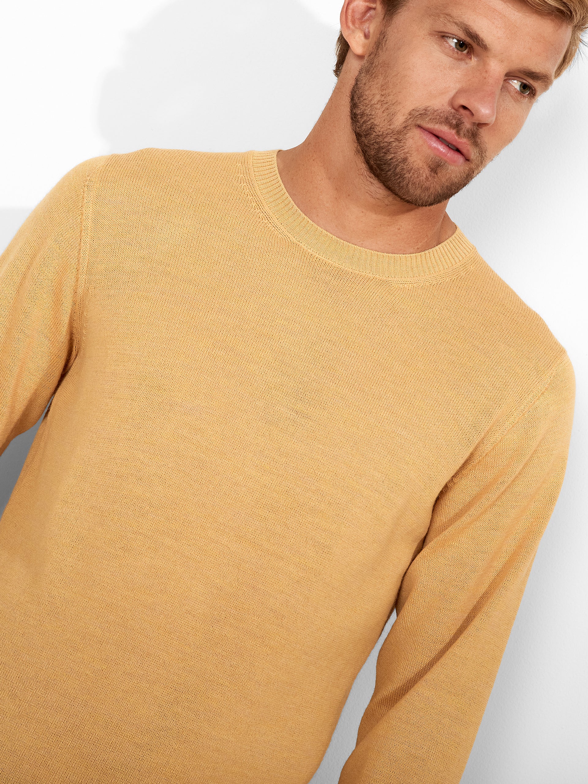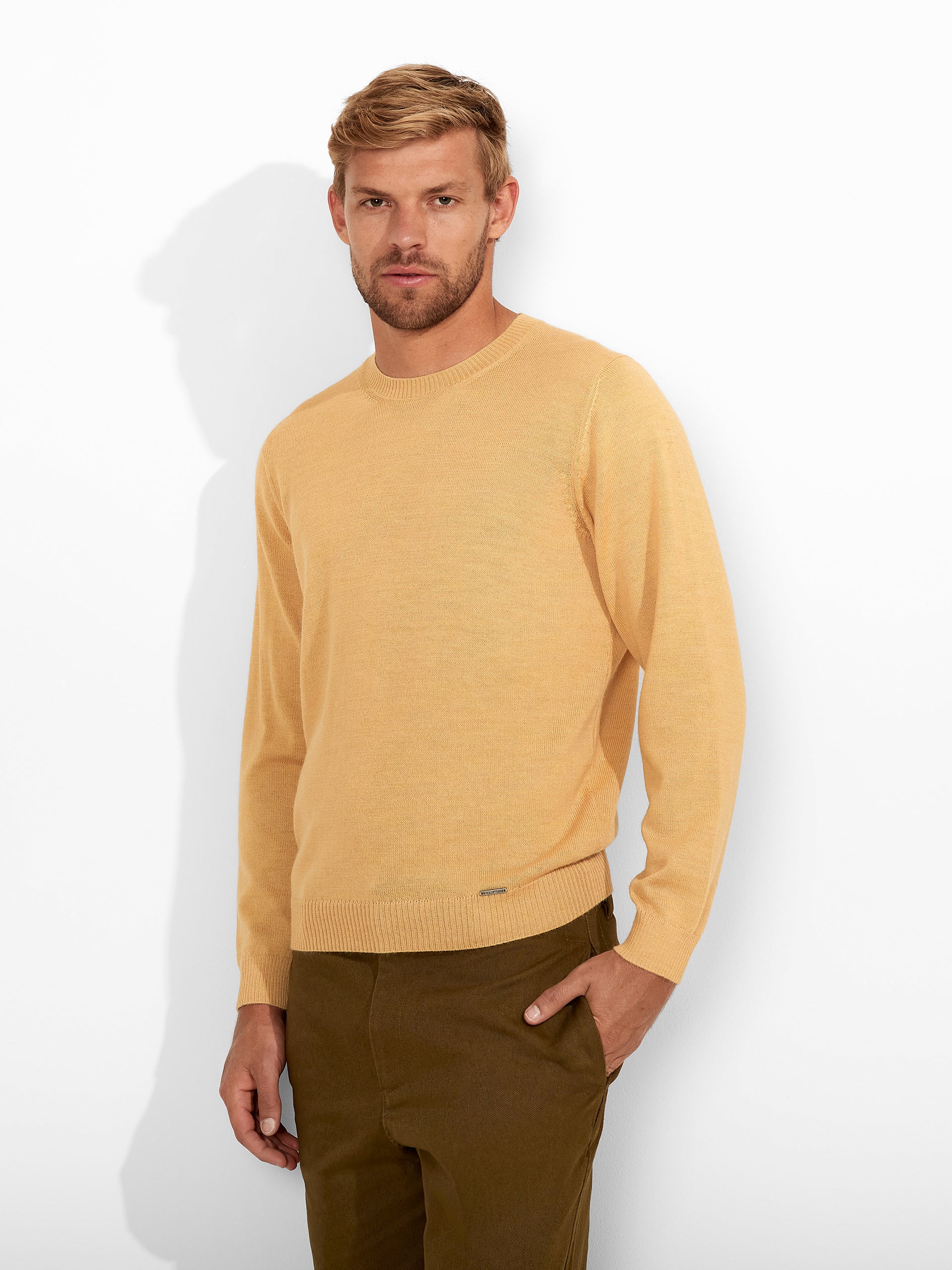 Alaska sweater in yellow tone, designed in a solid color with a round neckline. The knit is soft and warm. Expertly crafted from baby alpaca, it offers exceptional warmth and softness. | Predominant material: Baby Alpaca