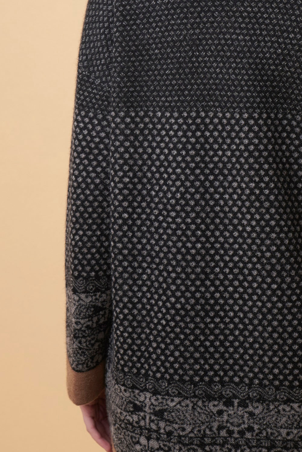 Our Uforia cardigan stands out for its all over the garment peculiar jacquard design. Feel the softness and warmth of this garment made of 100% baby alpaca, inspired by the floral art of Peruvian altarpieces. Ideal for casual outings in these winter days.