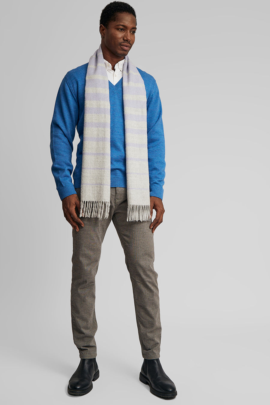 Elegant scarf made of baby alpaca. Stripes of colors in different shades that achieve a perfect balance in any attire. The Tadeo scarf is the perfect accessory for winter days.