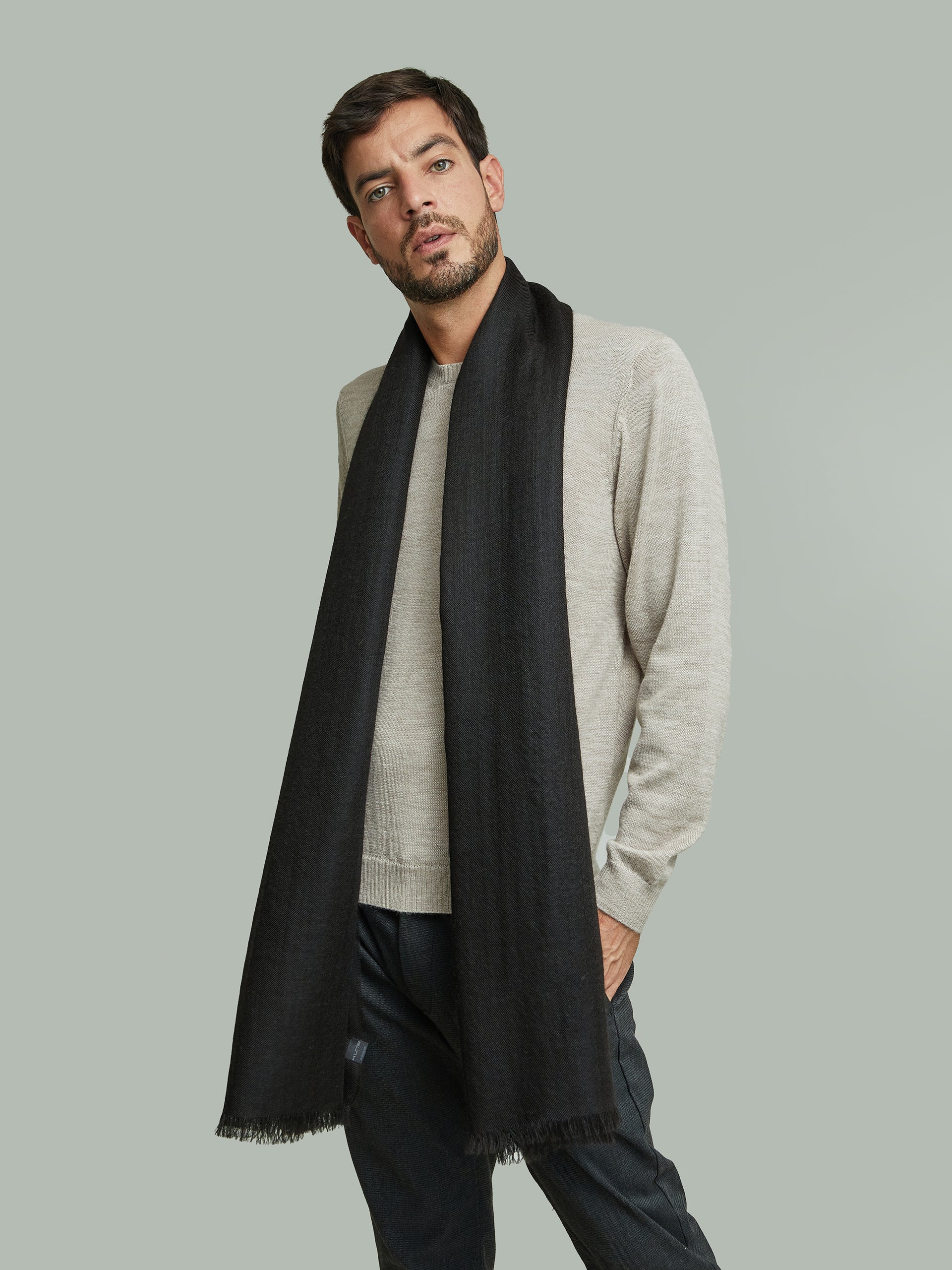 Breeze shawl is the perfect complement to enhance your outfits on these cold days. The exclusive Black Alpaka collection has been made with natural black alpaca fiber, that has not been exposed to any dyeing process. It symbolizes the commitment that we make together with Pacomarca for the conservation of pure black alpacas, now endangered.