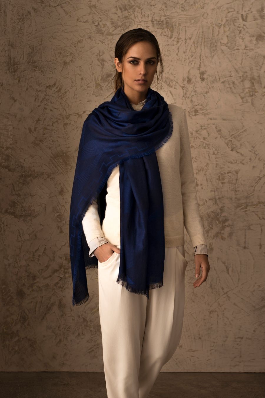 Let yourself be surrounded by the soft combination of royal alpaca and silk. Our Byzance stole is the perfect complement to a sophisticated outfit.