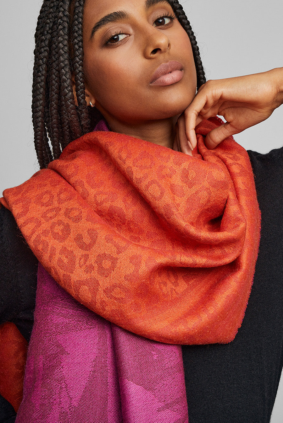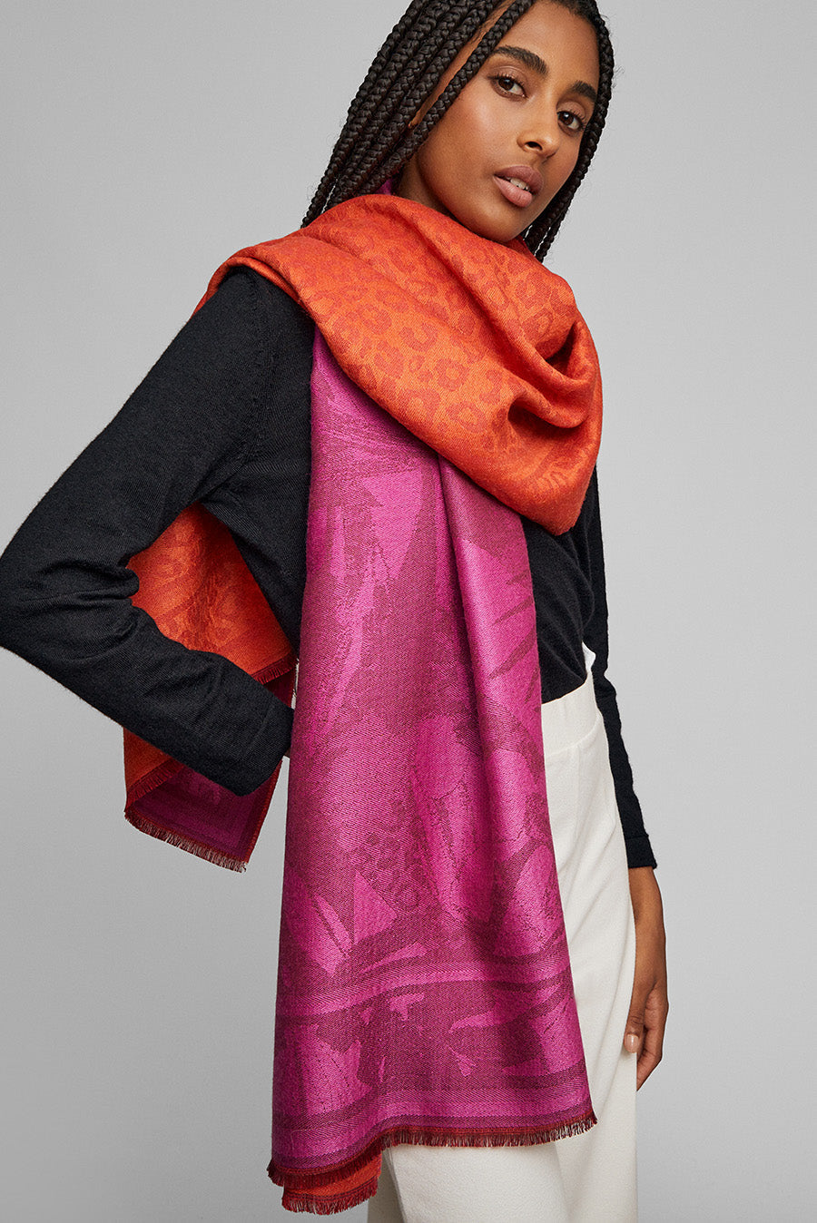 Soft and light shawl. Let yourself be wrapped by this delicate garment, an accessory that you will love. The Wuttenberg shawl is reversible and is made of baby alpaca and silk. You can find this beautiful accessory in 3 colors that will highlight your look.