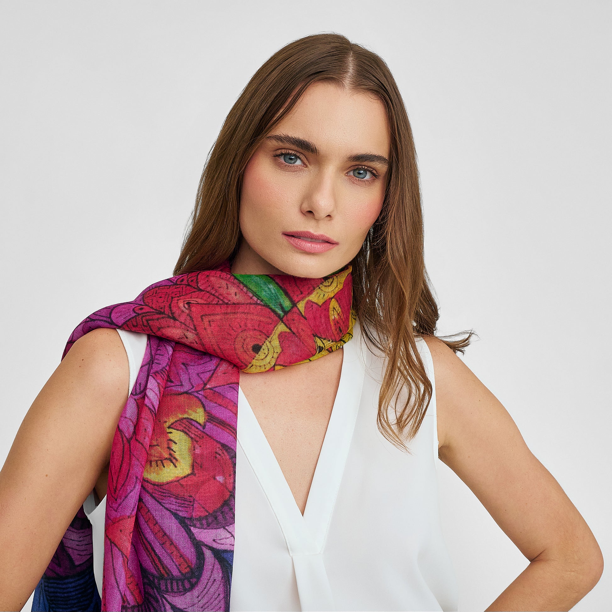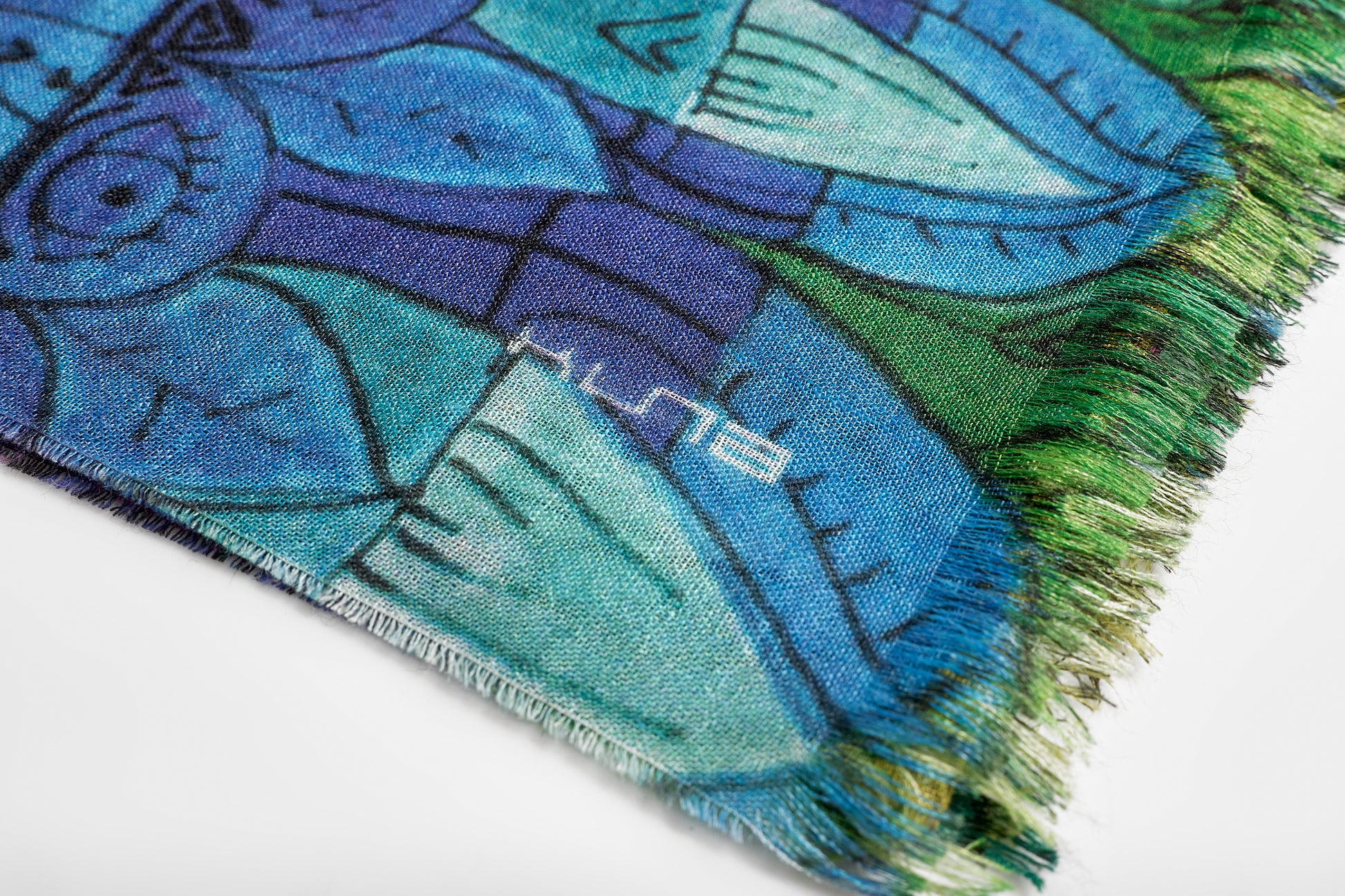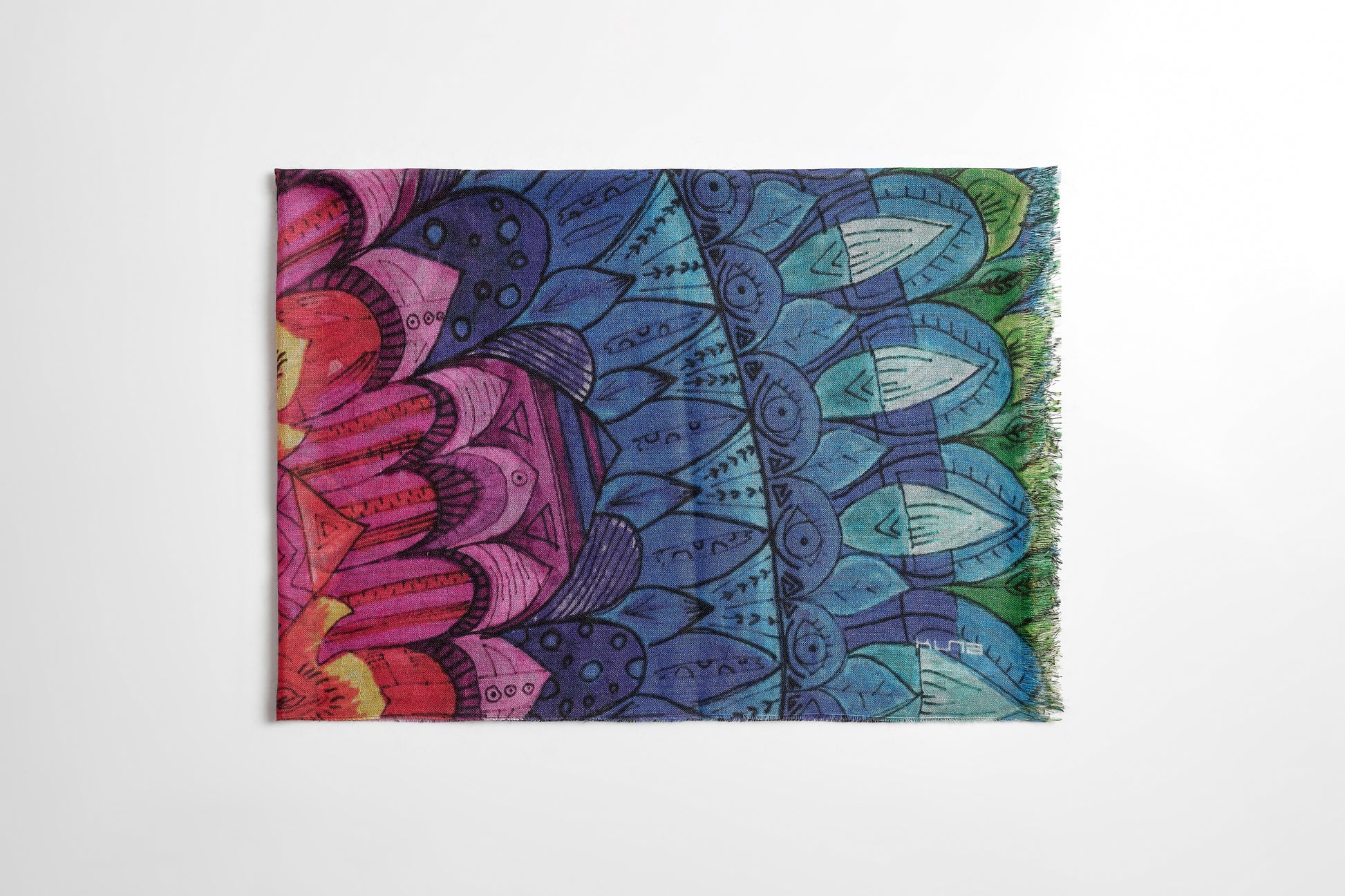 You leave all your fears behind and allow yourself to be guided by yourself, you know yourself, you are the peace you were looking for, it is time to serve others. "I am happy." This beautiful shawl has been the inspiration of our artist Kelly Abarca, through artwork captured in baby alpaca and silk shawls. | Predominant material: Baby Alpaca & Silk