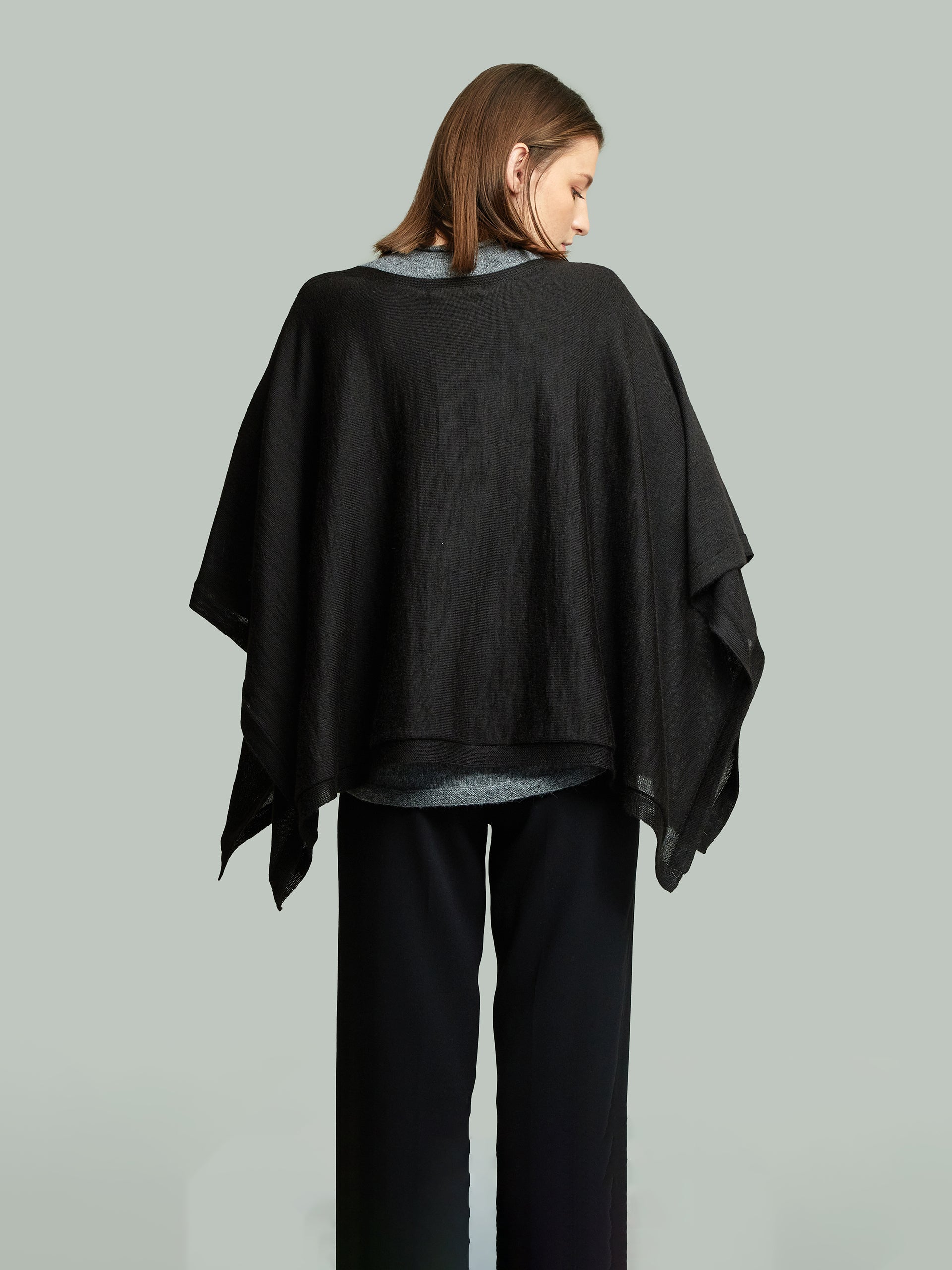 Our incredible Britany poncho offers the maximum warmth and comfort, thanks to the pure black alpaca fibre of which it is made. The exclusive Black Alpaka collection has been made with natural black alpaca fiber, that has not been exposed to any dyeing process. It symbolizes the commitment that we make together with Pacomarca for the conservation of pure black alpacas, now endangered.