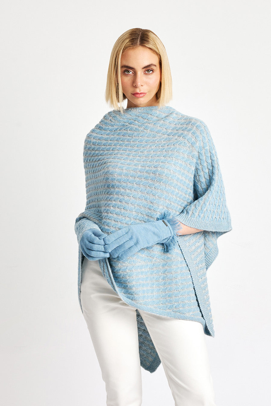 Classic silhouette and original texture in our Wonder poncho. Feel the softness and warmth of a garment made from 100% baby alpaca.