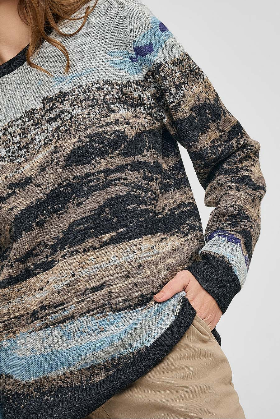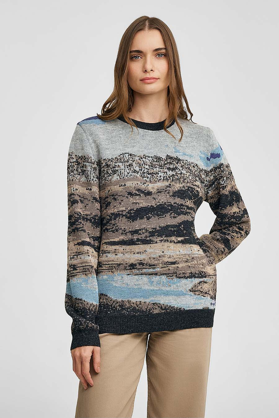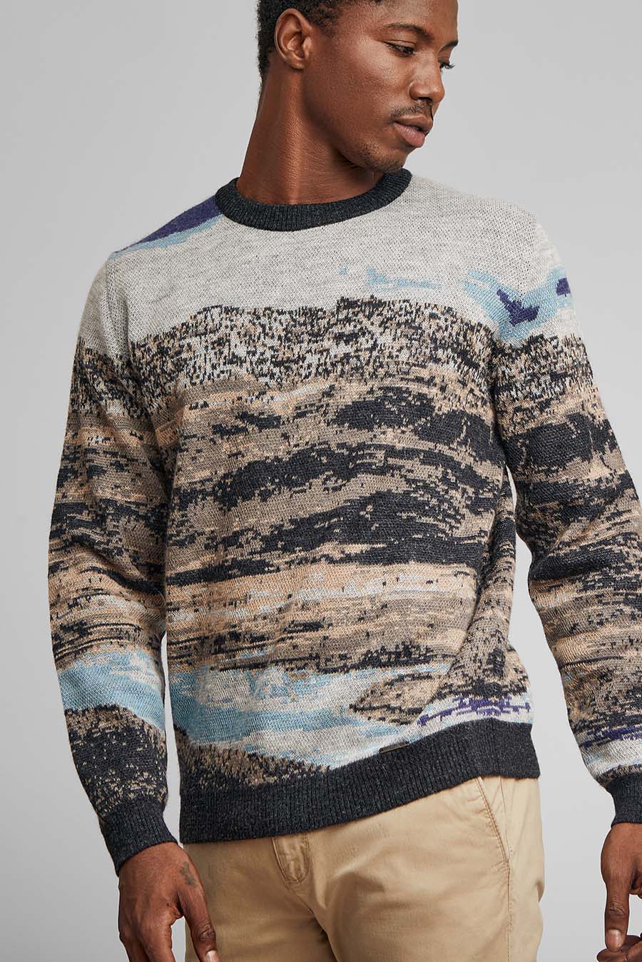 Our reversible sweater is inspired by Lagunillas in the city of Puno, made of 100% baby alpaca. It is part of our Landscape collection. Unisex sweater.