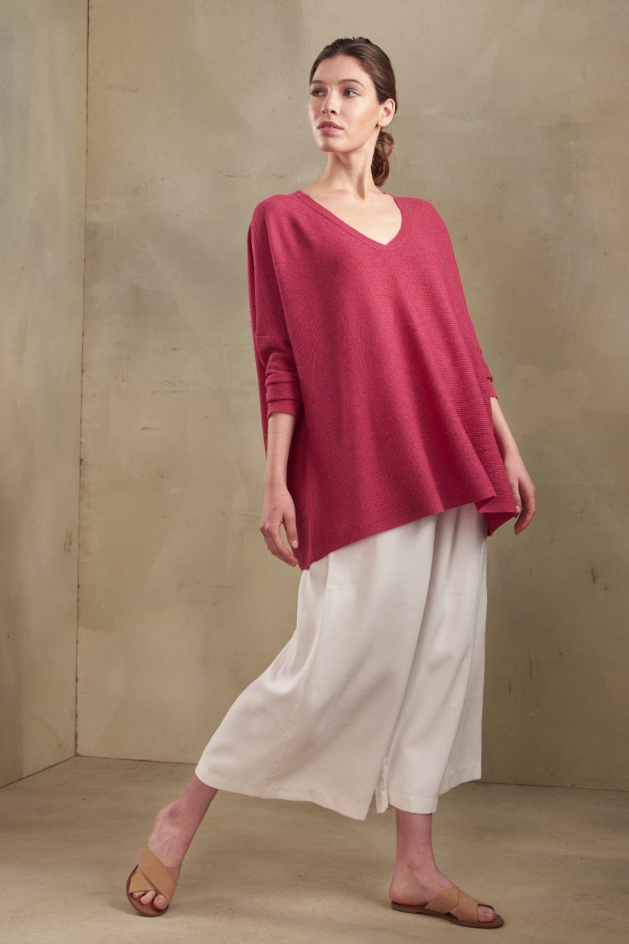 Enjoy the unmistakable softness and lightness contained in our oversize Talisman sweater, made with the mix of baby alpaca and silk fibers. Delicate garment with V-neck opening becomes the protagonist of any garment.