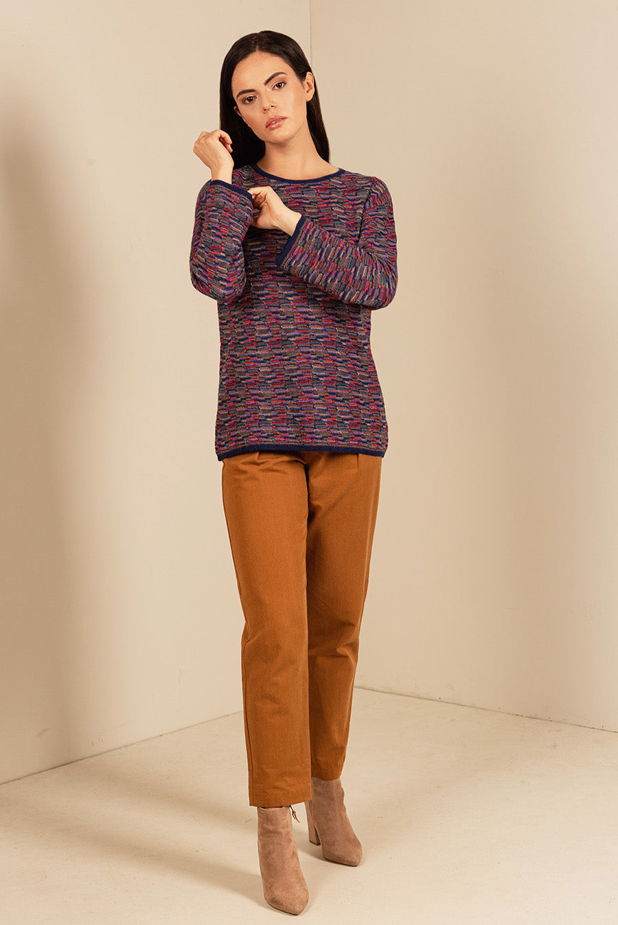 Our Ucrania sweater was knitted in one of the most special points of this collection, let yourself be carried away by the soft and original texture of this garment with a round neck and a classic silhouette.
