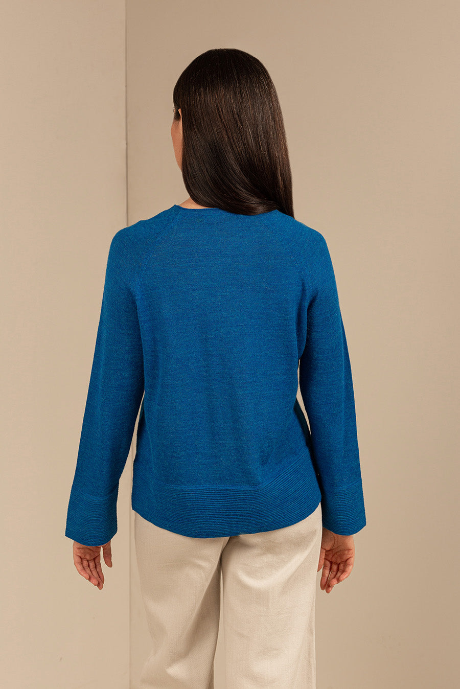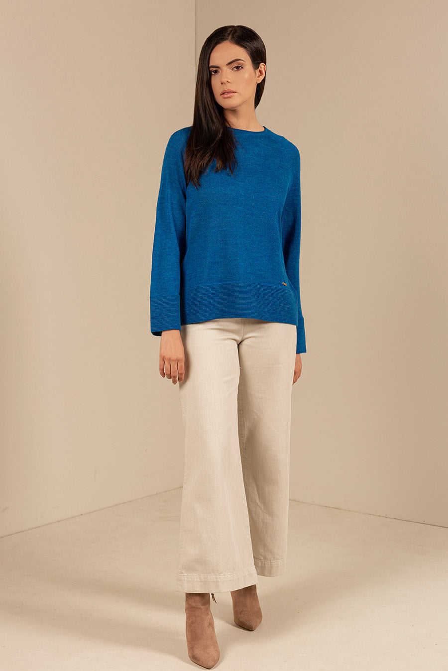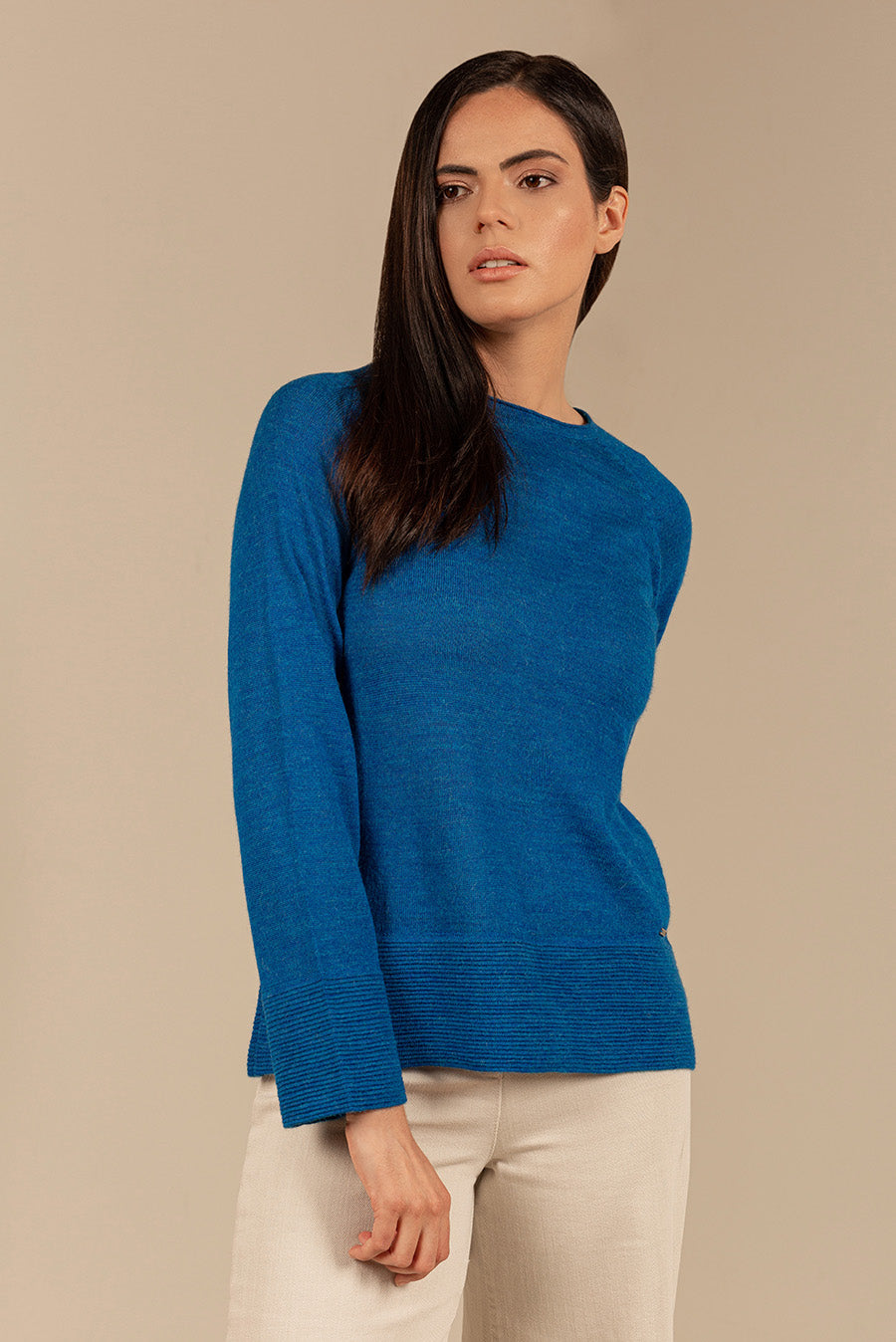 Straight cut and round neck characterise our Ullanta sweater, made of soft and cosy baby alpaca. Contrasting detail on cuffs and bottom add the finishing touch.