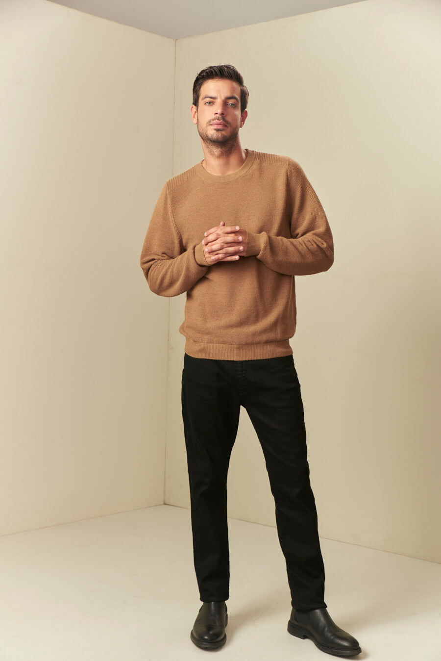 We reissued a classic sweater, find this piece in three combinable tones. It has elastic ribbing on cuffs and waistband, which indicates that attention has been paid to fit and comfort, which is essential in a garment of this type. The Urto sweater is made in baby alpaca.