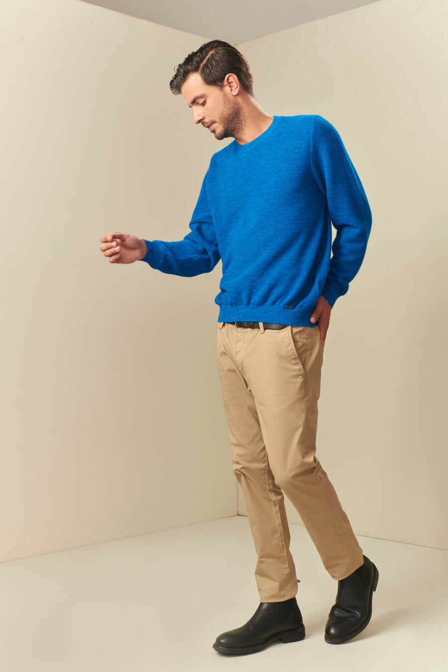 We reissued a classic sweater, find this piece in three combinable tones. It has elastic ribbing on cuffs and waistband, which indicates that attention has been paid to fit and comfort, which is essential in a garment of this type. The Urto sweater is made in baby alpaca.