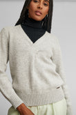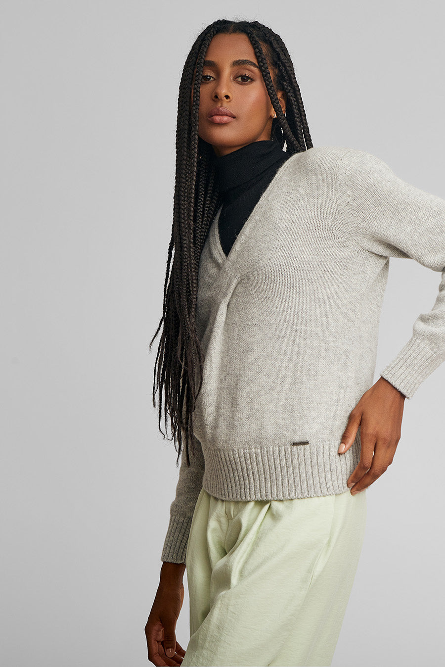Nothing like a baby alpaca sweater to enjoy the winter. Wait is a classic-cut garment with a V-neck. This garment stands out by its braid-cross detail. Knitted ethnic detail on the inside of the neck.