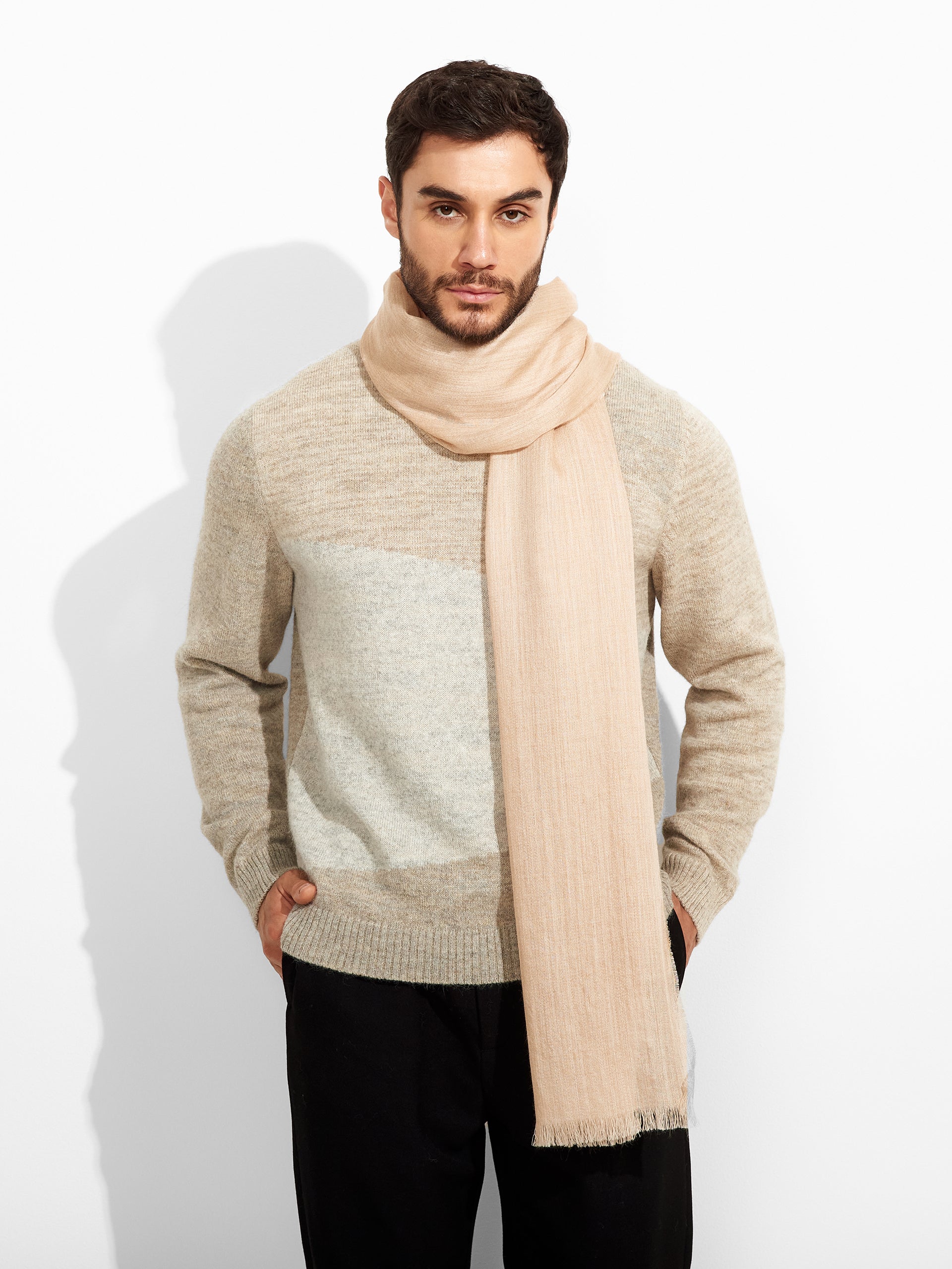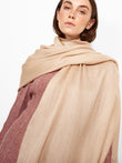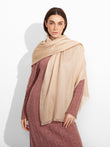 Teaberry B Stole in beige tone, in a solid color design, featuring fine fringed edges that add a delicate finish. Crafted from baby alpaca and eco silk. | Predominant material: Baby Alpaca
