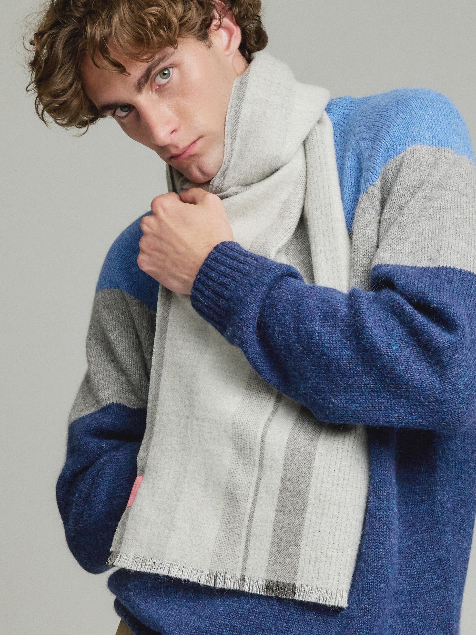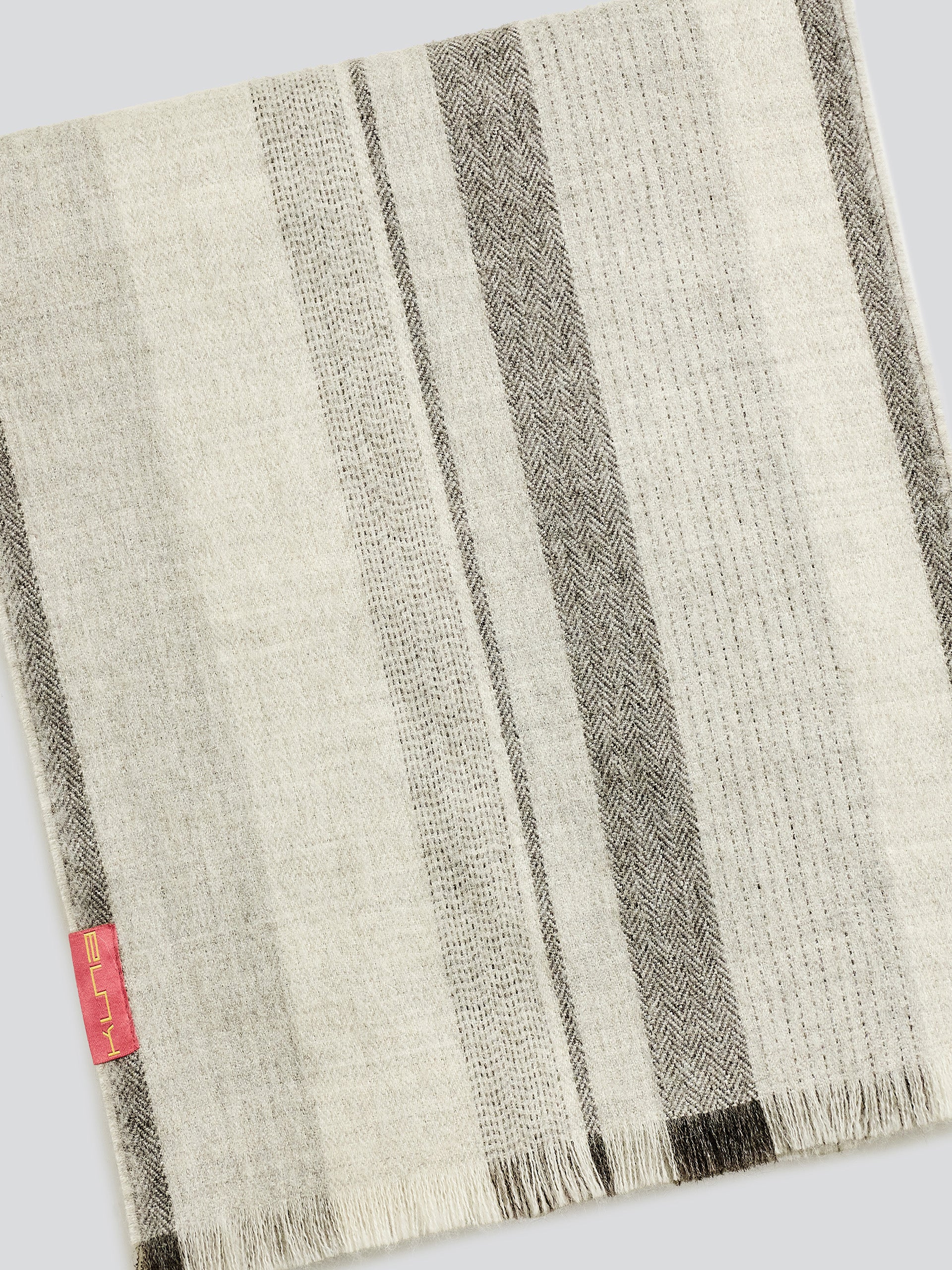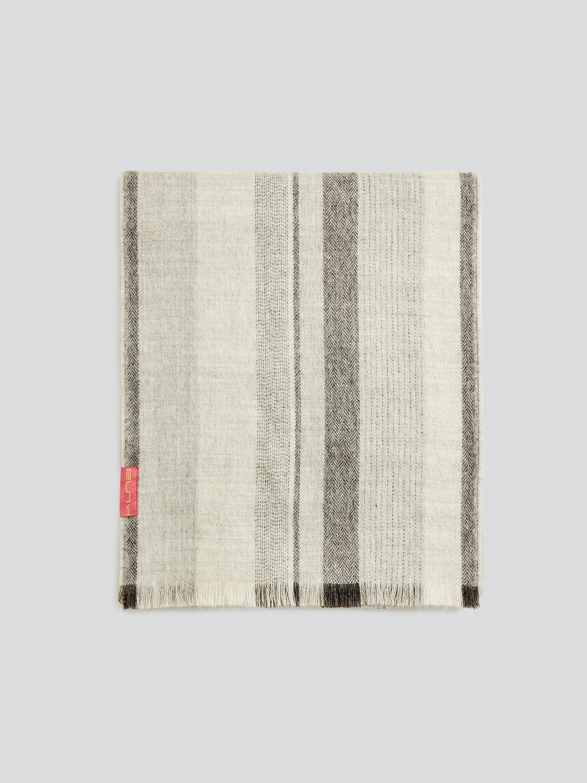This warm and soft baby alpaca scarf adds the perfect touch of style to your outfits with its striped design. Sober colors are the characteristics that make this accessory a must-have for this season. Timeless and elegant, it will keep you warm with style. | Material predominante: Baby Alpaca