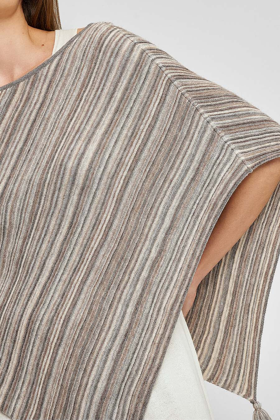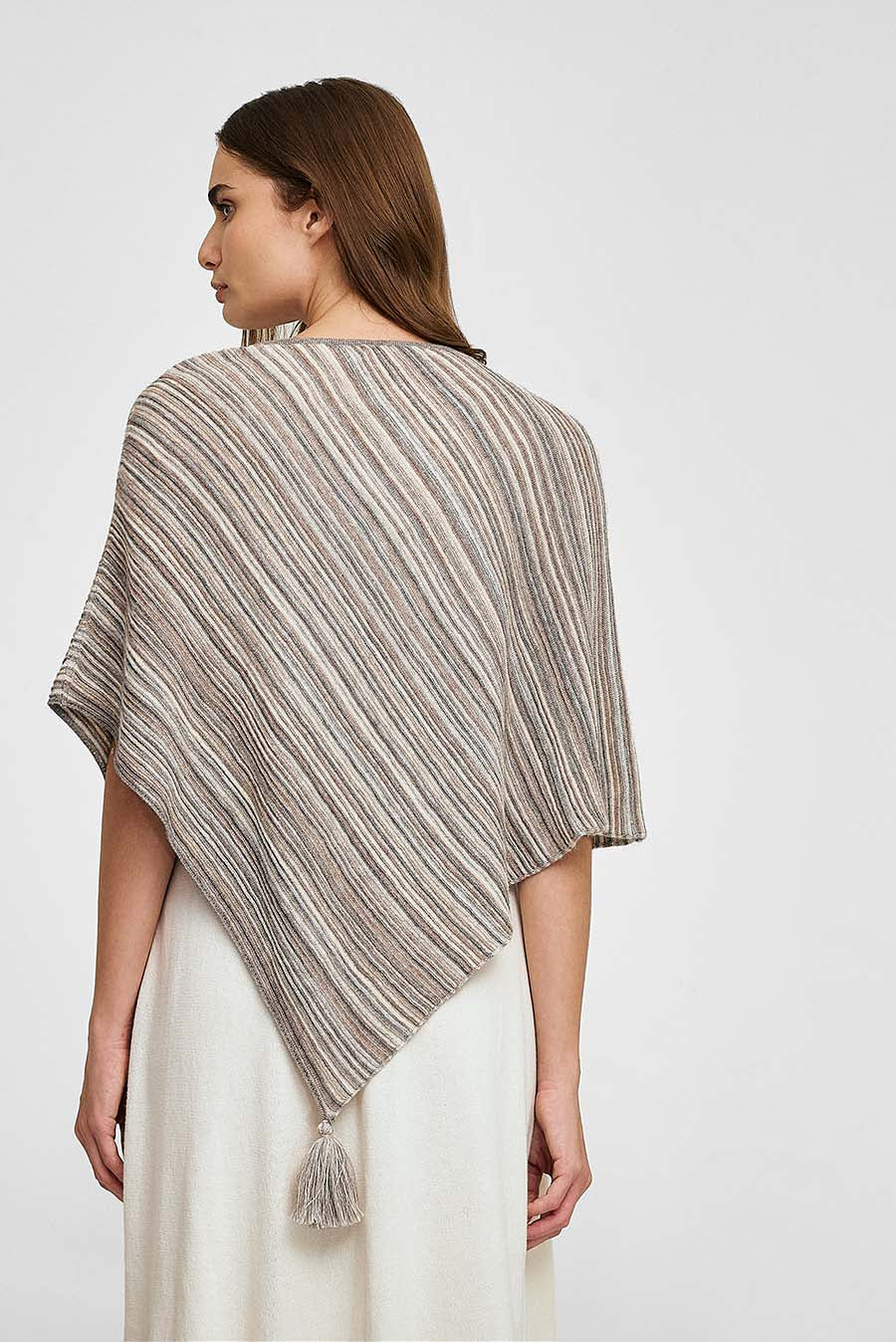 The excellent quality of our materials enriches the essential style of this poncho made of baby alpaca and organic cotton. At the bottom of the garment stands out a woven detail that runs all around the ring of the poncho, giving it a sophisticated touch. | Predominant material: Cotton & Baby Alpaca