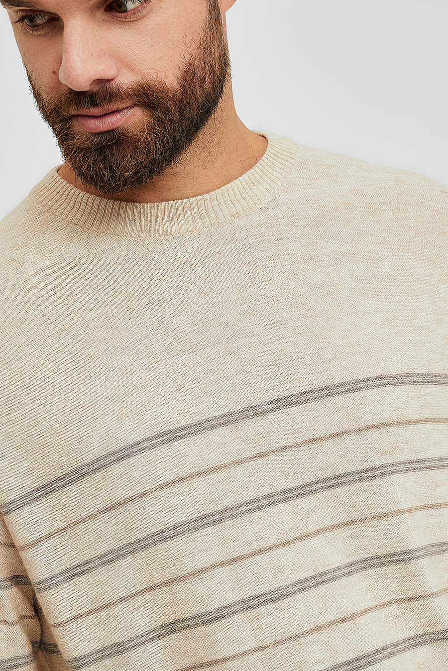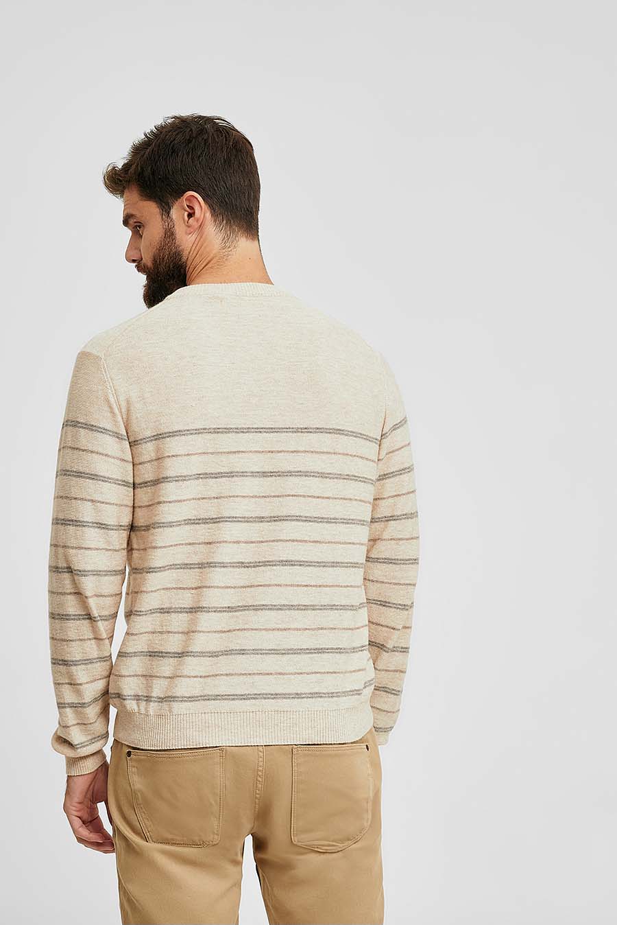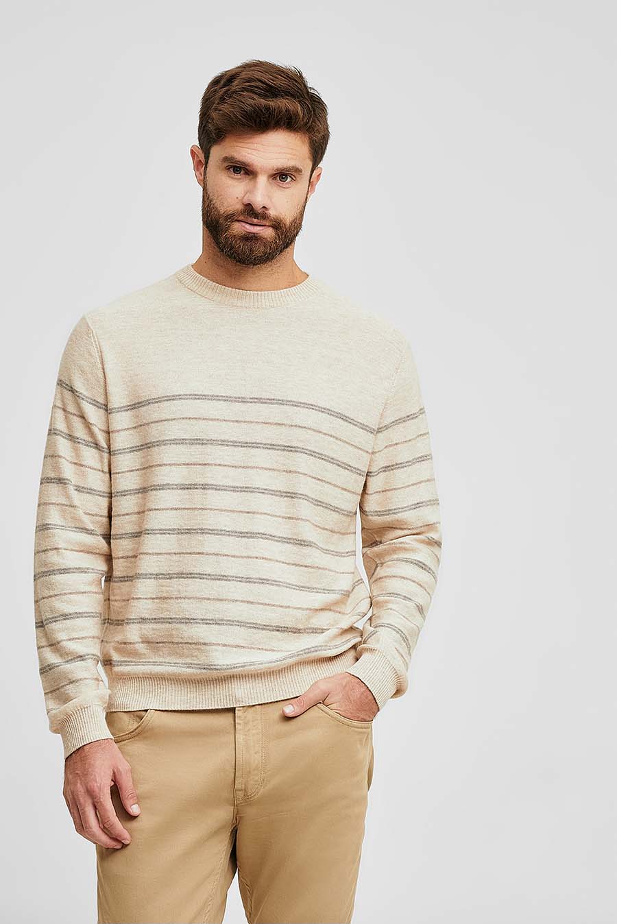 The straight cuts create a dynamic and elegant effect in our new Westminster sweater with striped design. Made of organic cotton and baby alpaca, a yarn that gives the fabric a special lightness and softness during its use, ideal for the sunny season. Available in 2 shades. | Predominant material: Cotton & Baby Alpaca