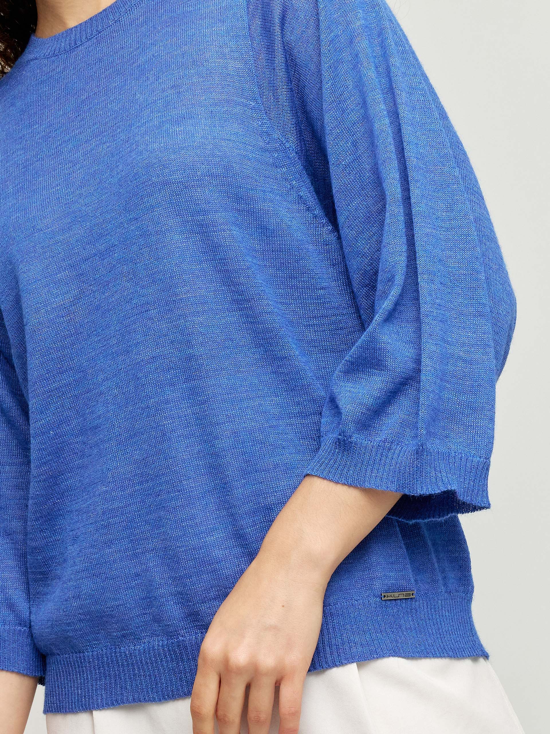 Unique garment with a modern design in baby alpaca with silk. The finish makes it an ideal piece for the season. It has a round neckline and three-quarter sleeves. Feel the warmth and softness of our Whiney sweater with a relaxed silhouette and full color, an ideal garment for casual outings. | Predominant material: Baby Alpaca & Silk