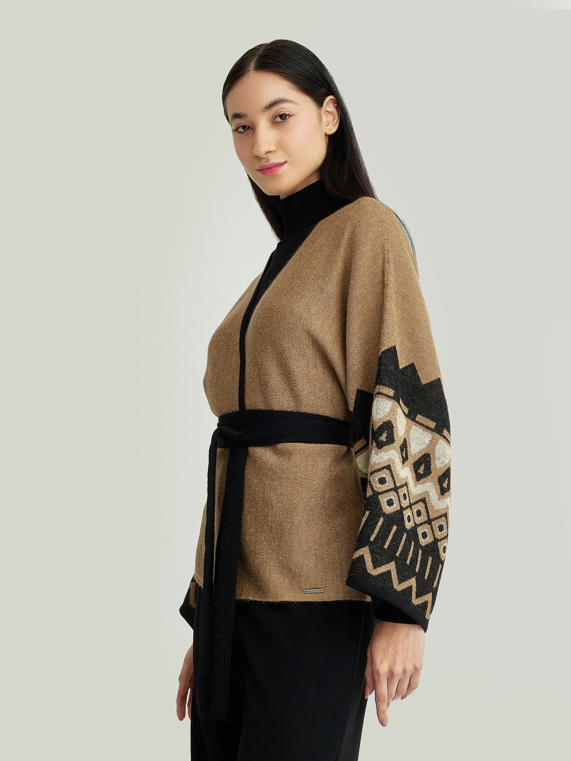 Our cardigan is simply incomparable. With a charming design on the sleeves, Yacinta is a unique item that stands out on any occasion. With a belt that adds an additional touch of style, made of baby alpaca, providing softness and warmth. It is the perfect combination of comfort and elegance for your winter wardrobe. | Predominant material: Baby Alpaca
