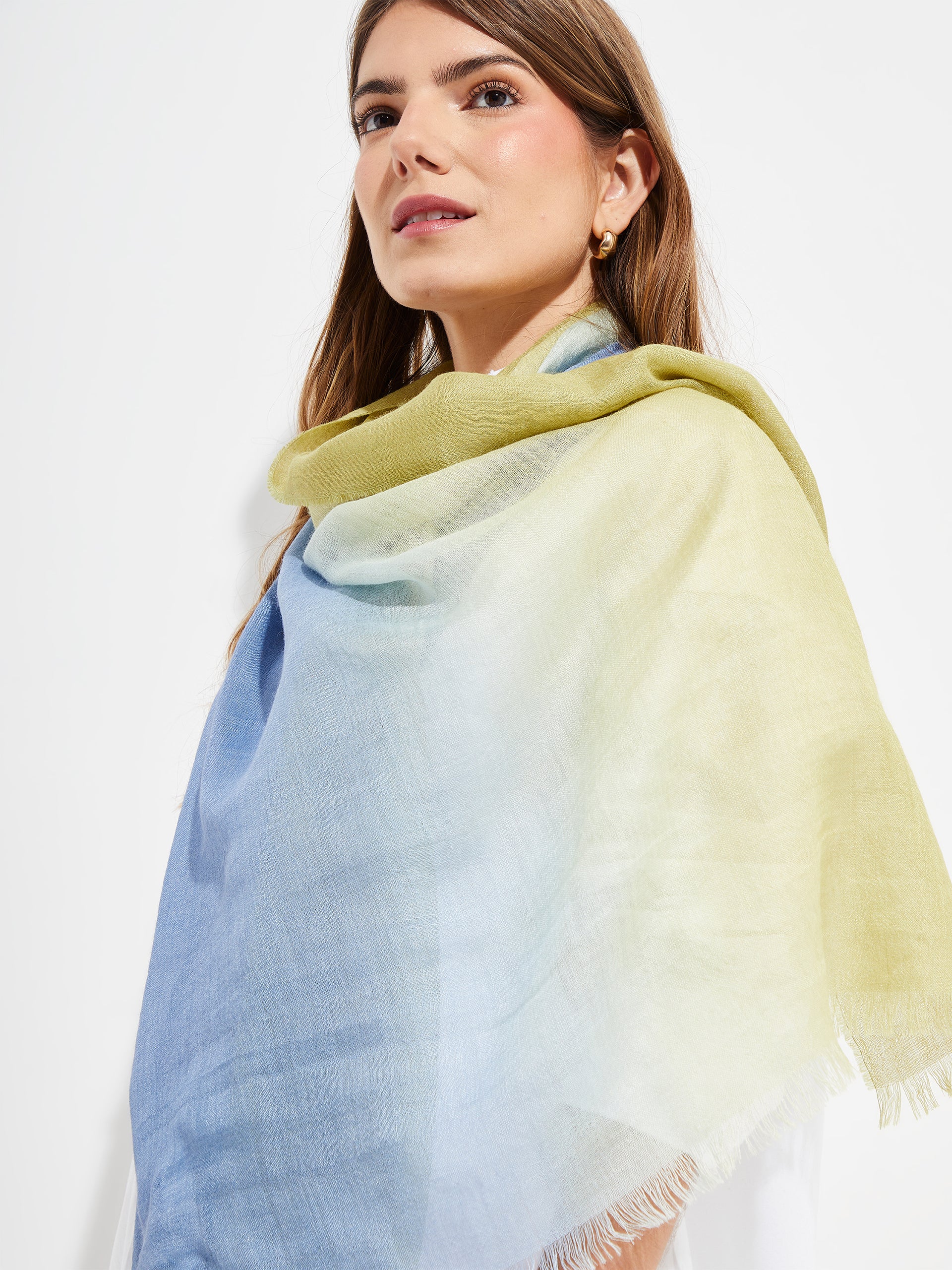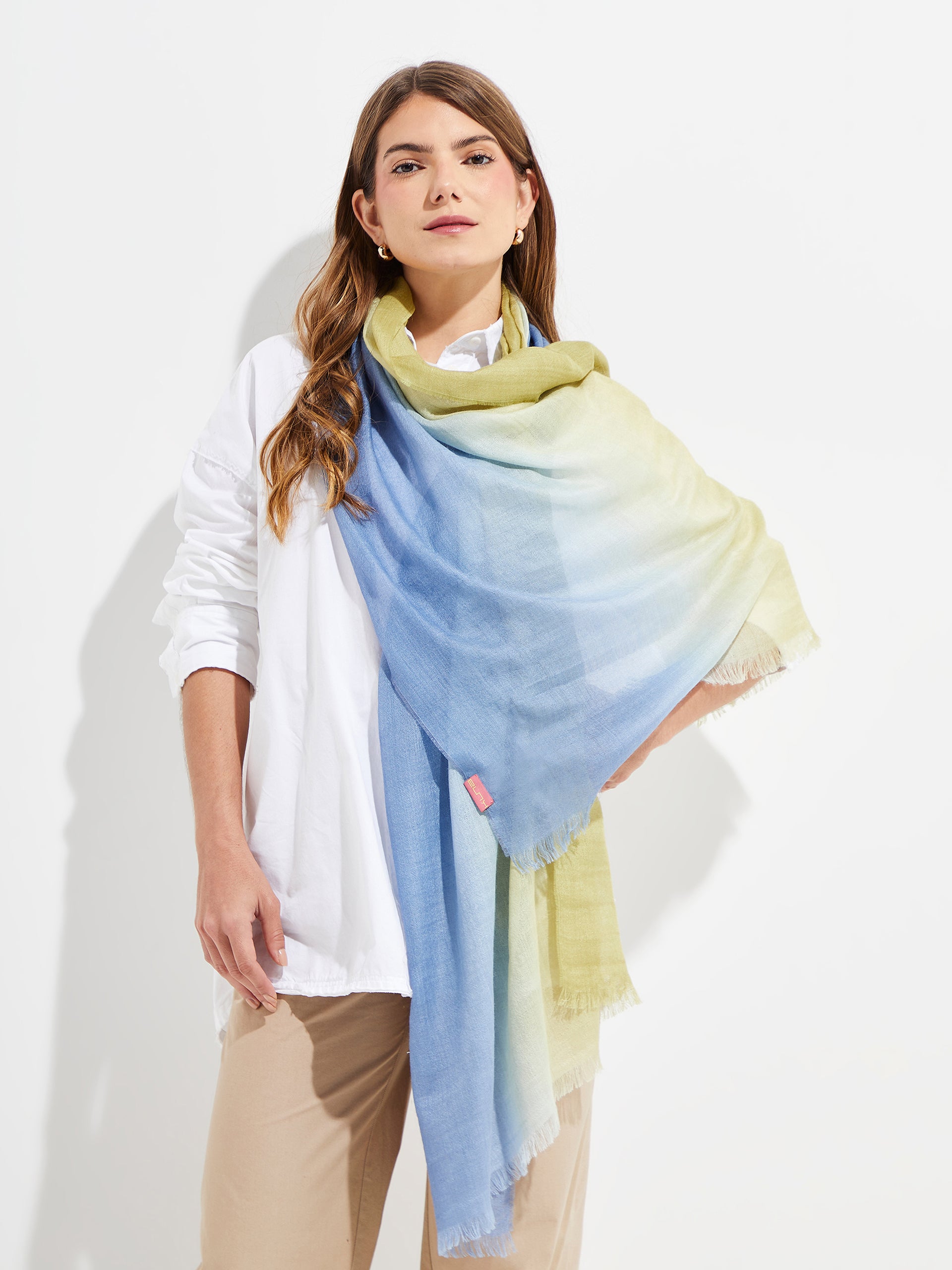 The Yacob stole combines luxury and softness in a blend of baby alpaca and silk, offering a light and warm texture. Available in three colors with an elegant gradient effect. It stands out for its versatility and sophisticated design, ideal for any occasion, providing distinction and style with its delicate shine and natural comfort. | Predominant material: Baby Alpaca