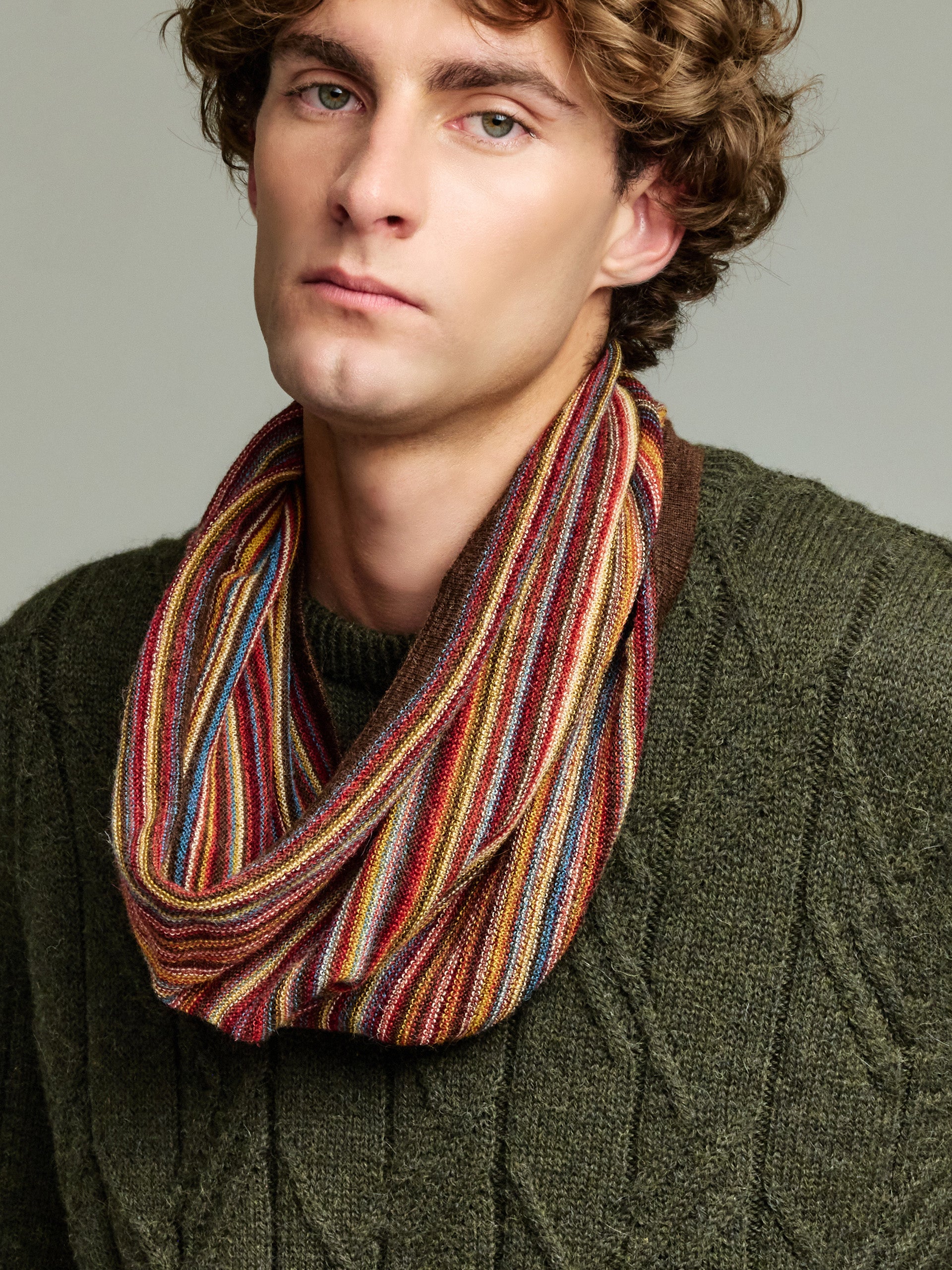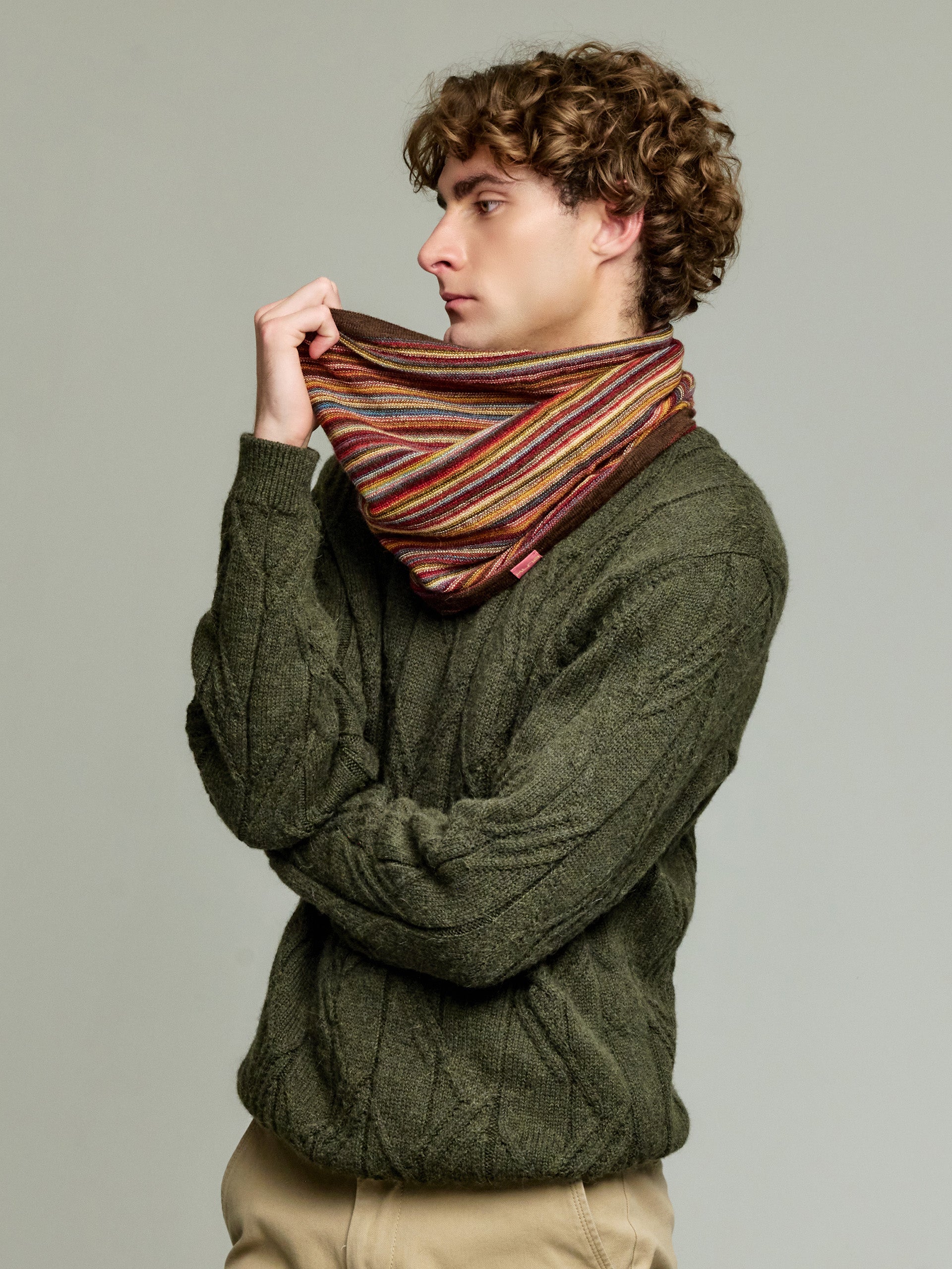 The Yanis scarf, made of Jacquard fabric of baby alpaca, offers a luxurious combination of high-quality materials. Its striped design adds versatility and style, enhancing any outfit. Available in four combinations, it is the perfect complement for expressing your unique elegance. | Material predominante: Baby Alpaca