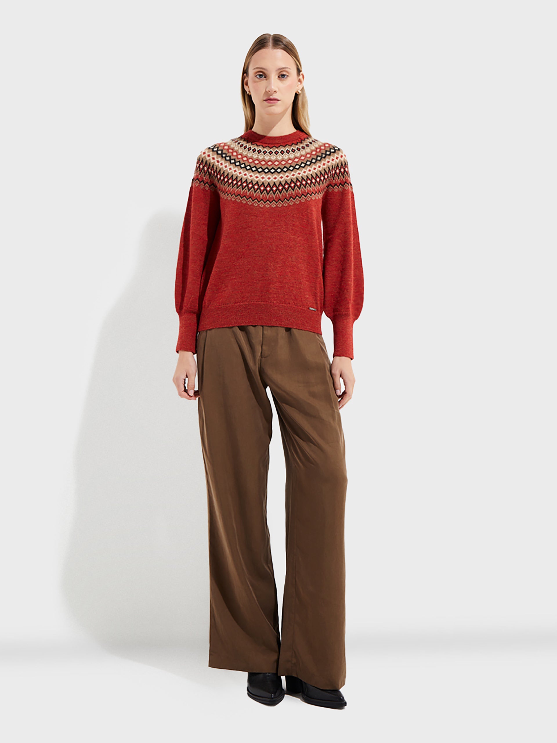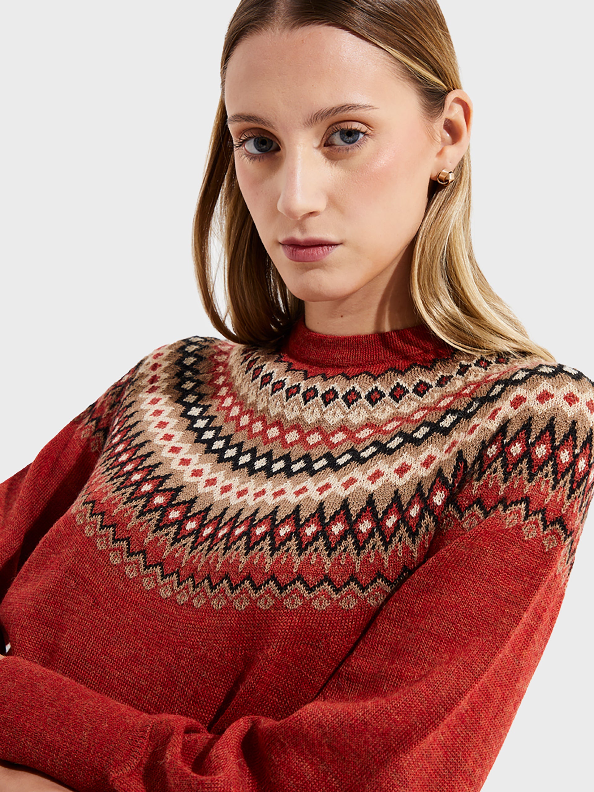 Discover timeless elegance with our Yasmina sweater, a classic crewneck piece enhanced by subtle details on the upper part. Its exquisite manufacture with baby alpaca guarantees incomparable softness and lightness. The waistband and cuffs add a touch of structure, providing comfort and style. | Predominant material: Baby Alpaca