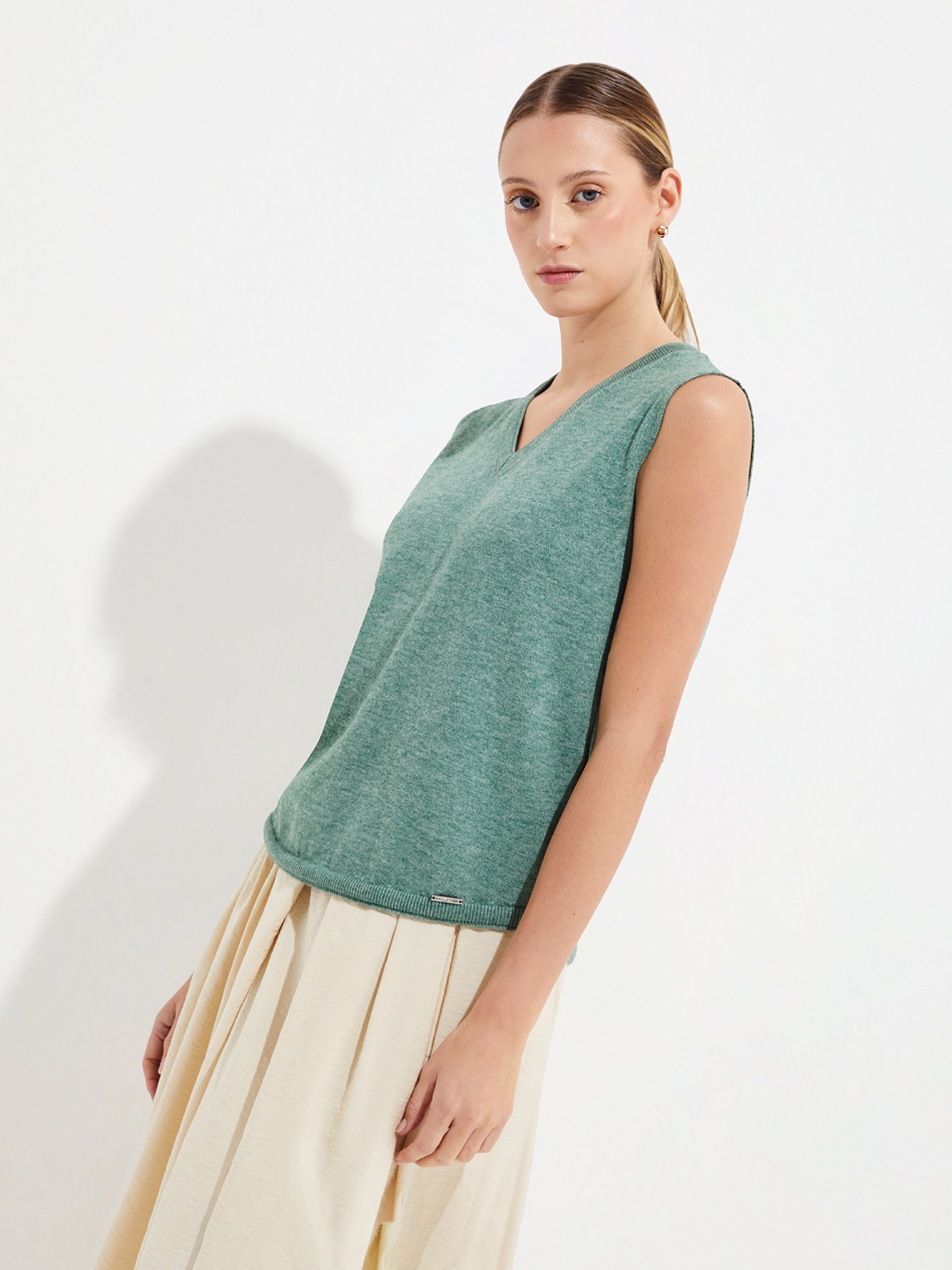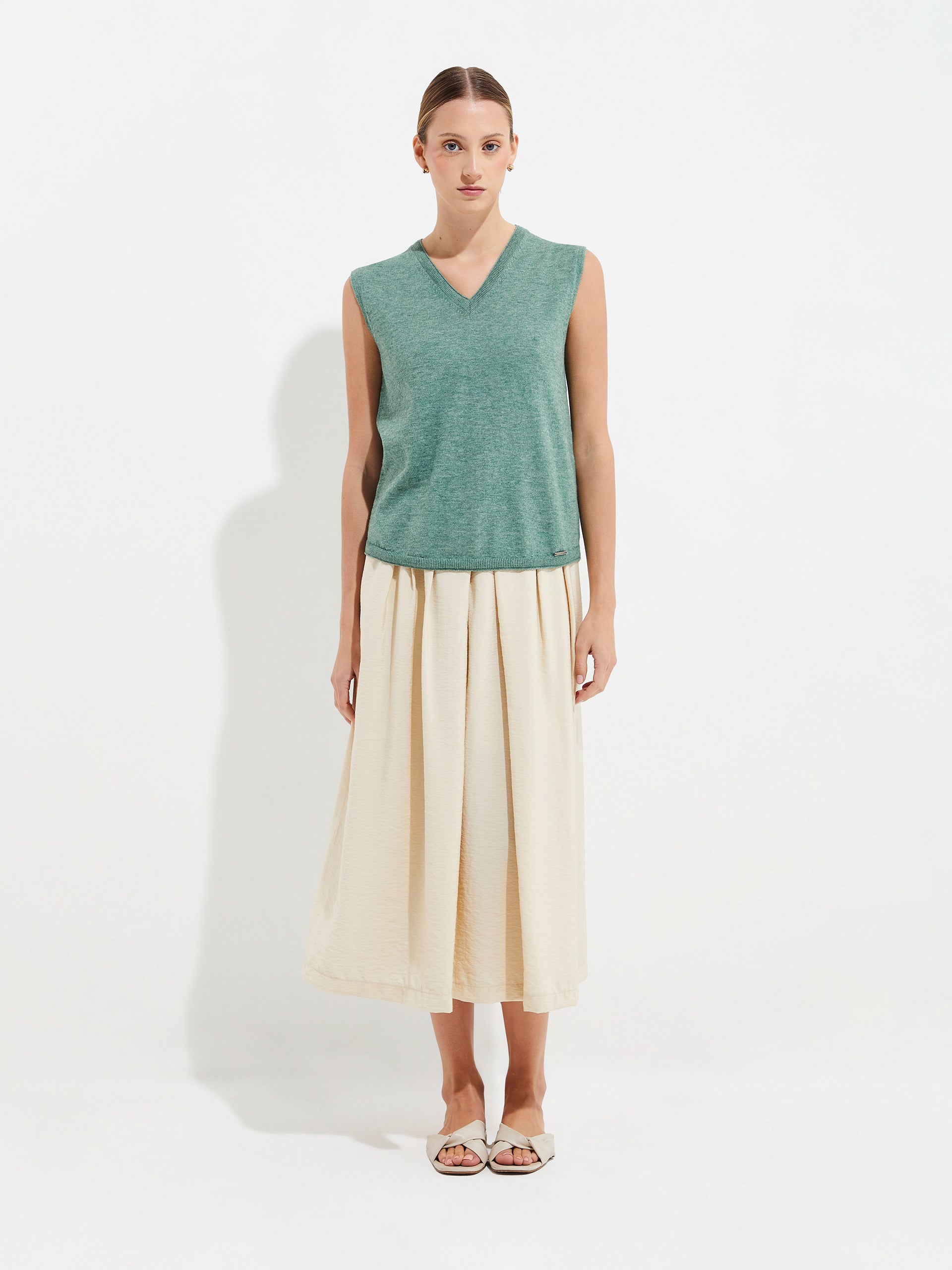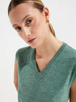 The Ylda vest, woven in organic cotton and baby alpaca, offers unequalled softness. This elegant sleeveless vest features a slightly fitted cut and a V-neckline that enhances and stylizes the neck. Available in three warm colors, it is the perfect garment to add a touch of sophistication and comfort to your outfit. | Predominant material: Cotton