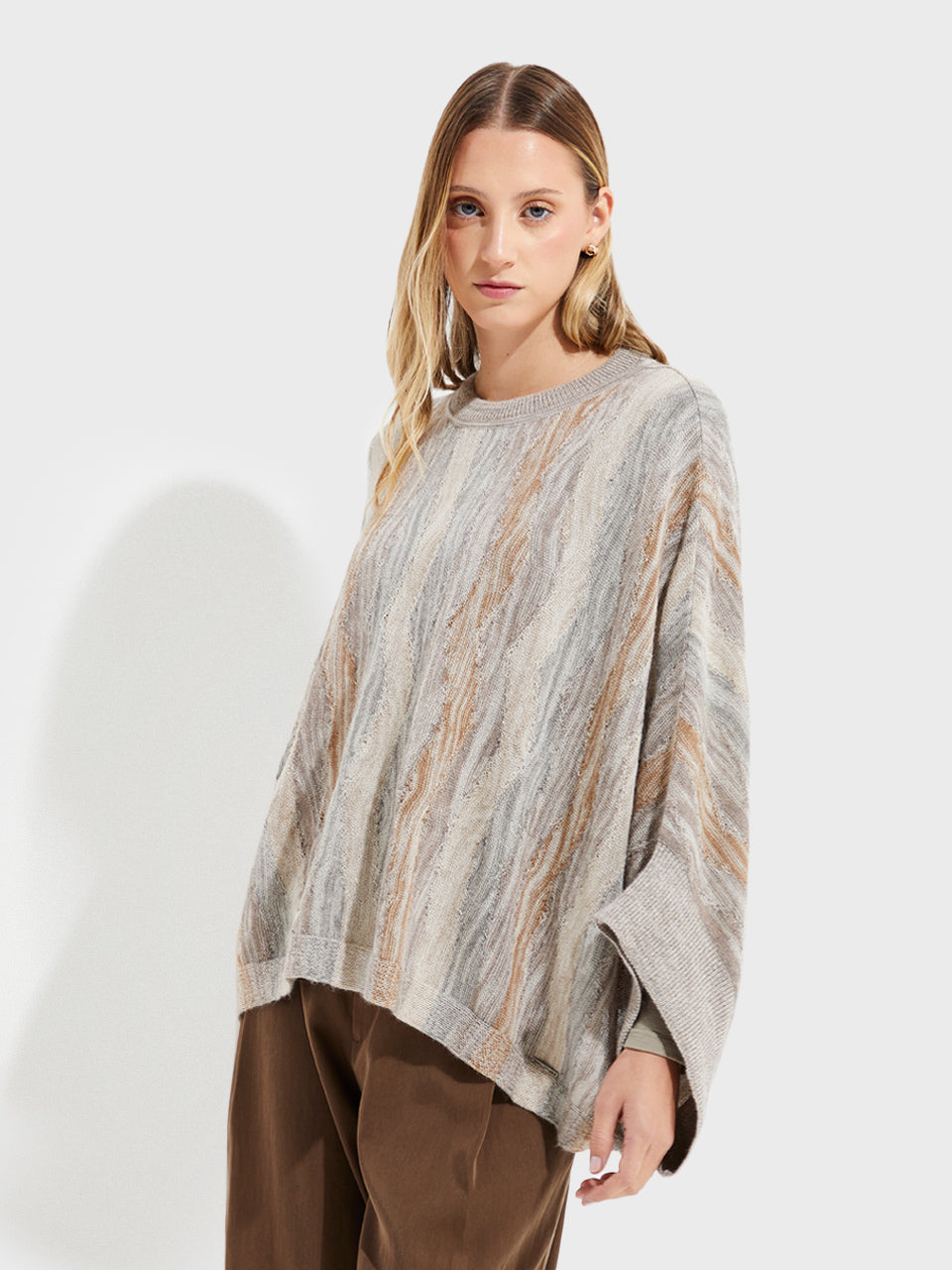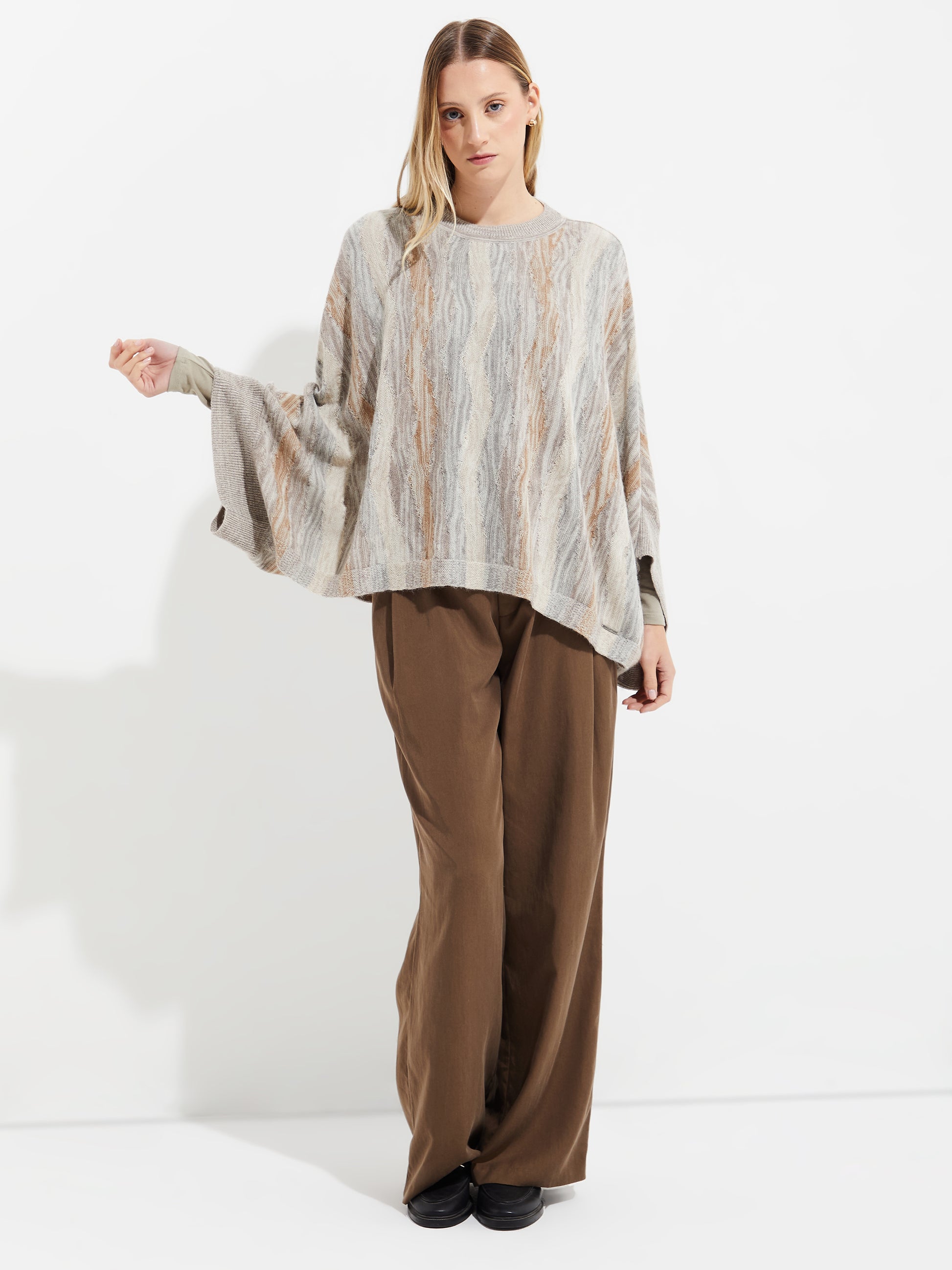 The Yola poncho is an exceptional piece made of 100% baby alpaca. Its exclusive and trendy design makes it a must-have addition to your closet. The round neck gives it a special and unique touch. Combine it with different garments to add color, whether for formal or more casual occasions. | Material predominante: Baby Alpaca