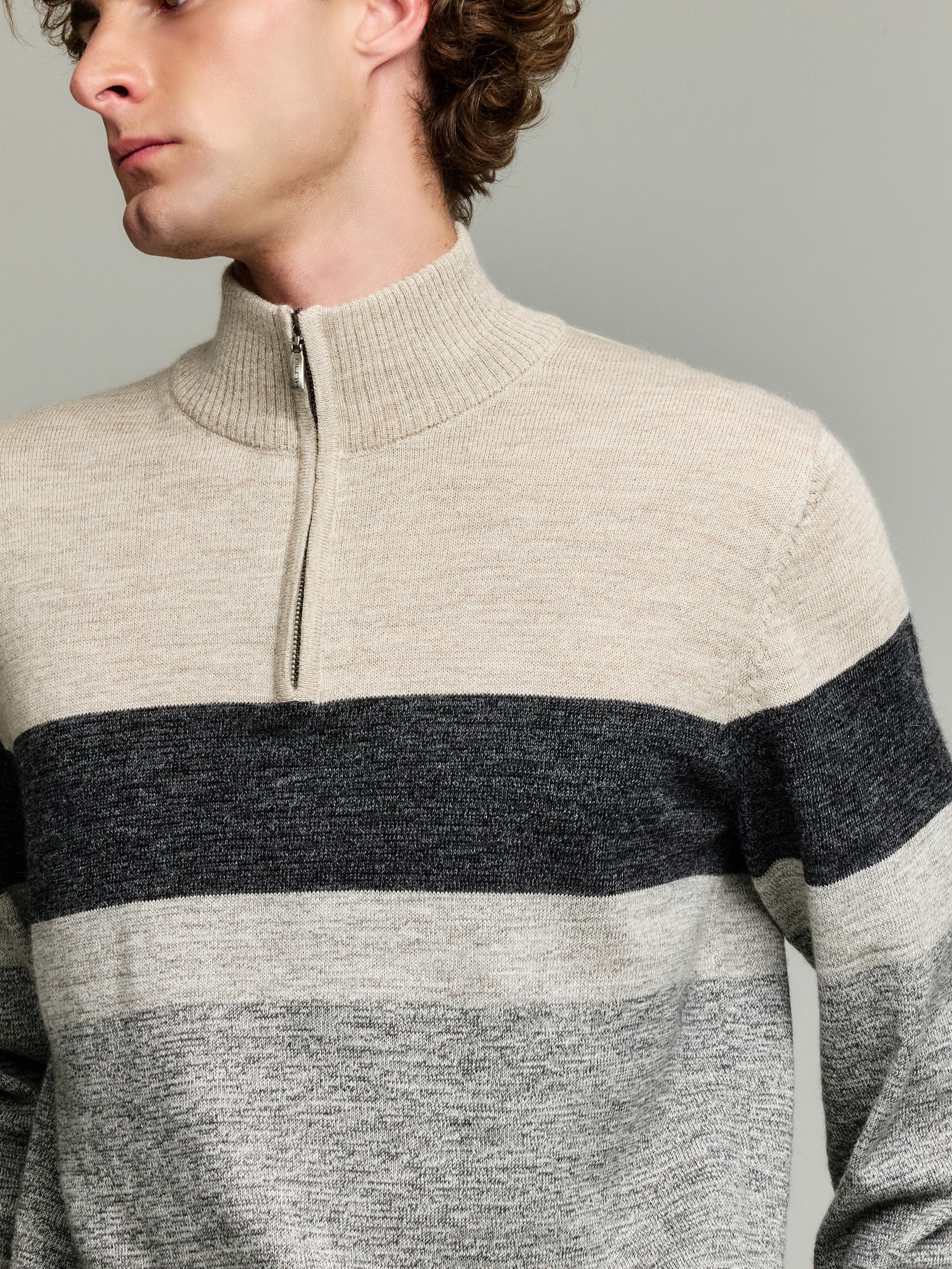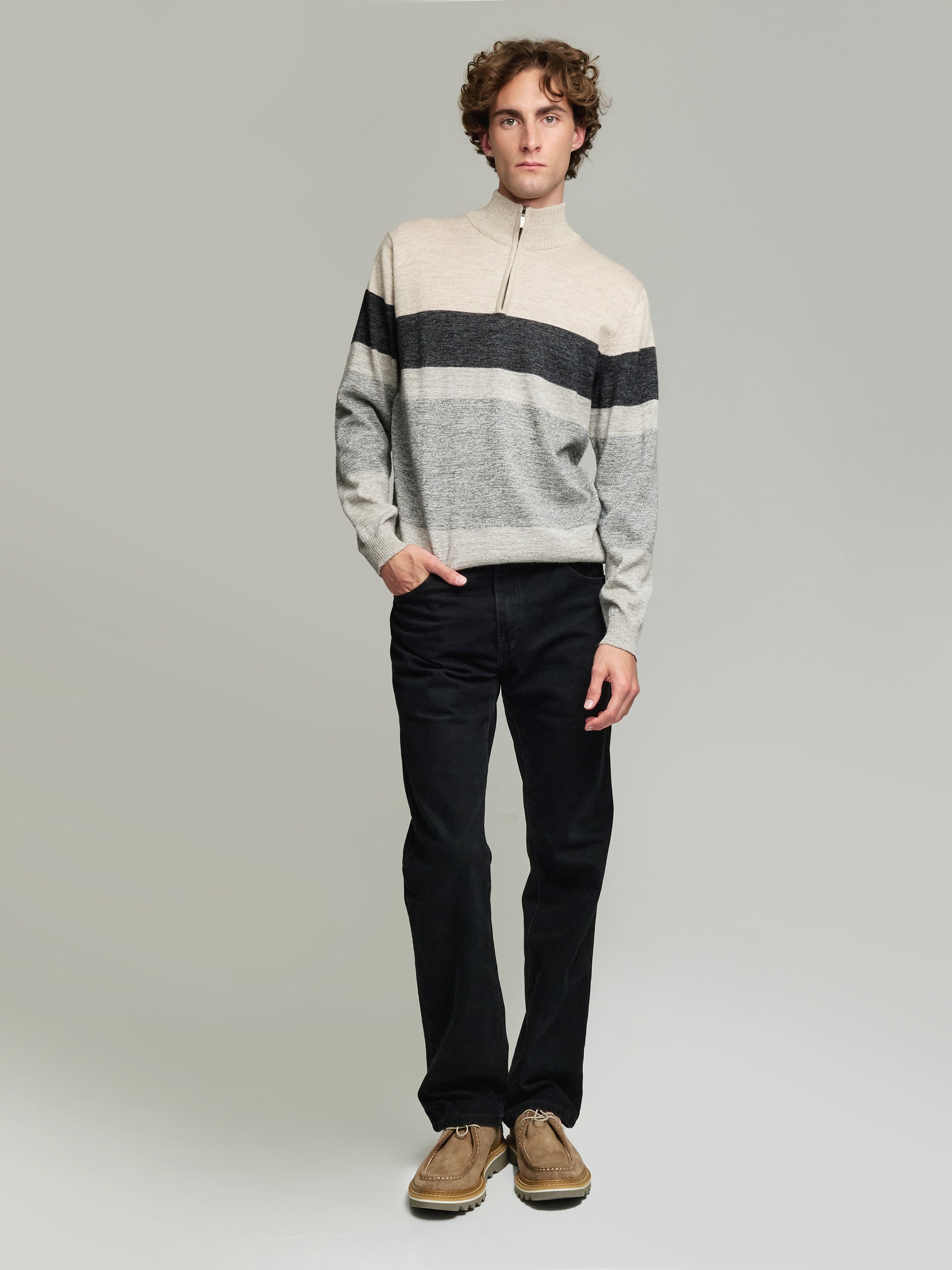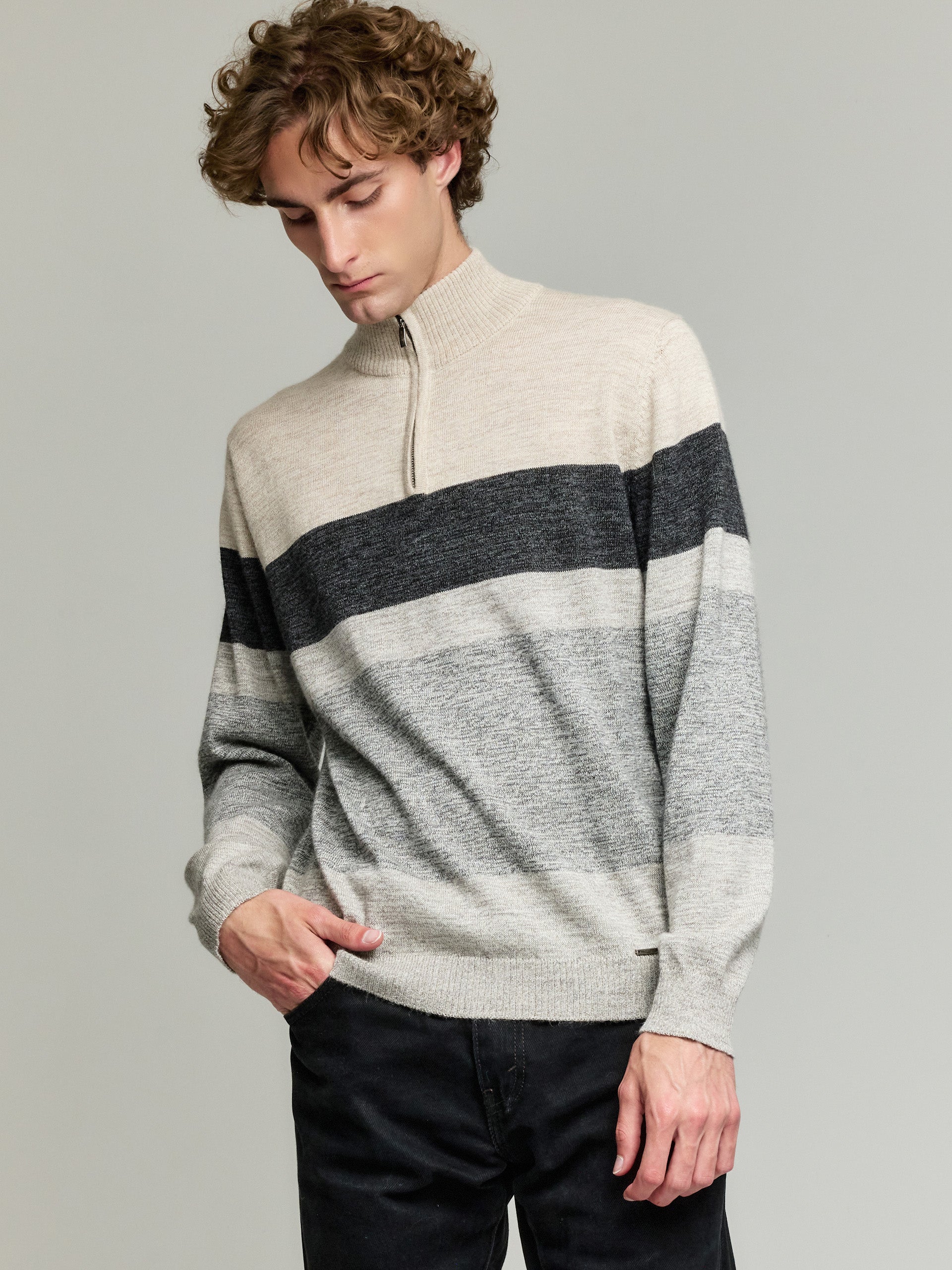 The Yonas sweater is destined to become an instant favorite. The zipper at the neck adds a distinctive touch. This sweater is not only a fashion choice, but also a statement of refinement that does not go unnoticed. Made of 100% baby alpaca fibers. | Material predominante: Baby Alpaca