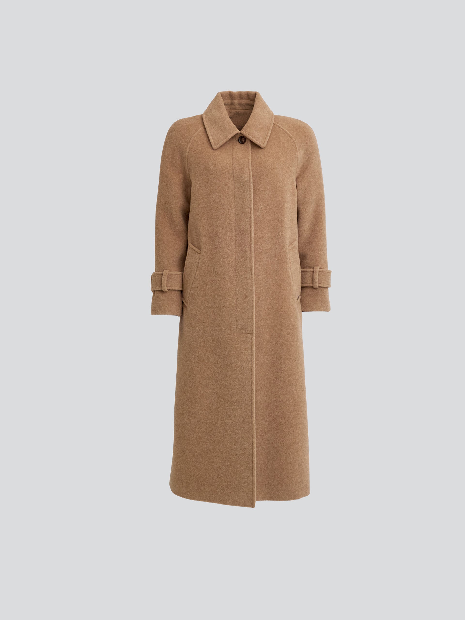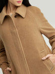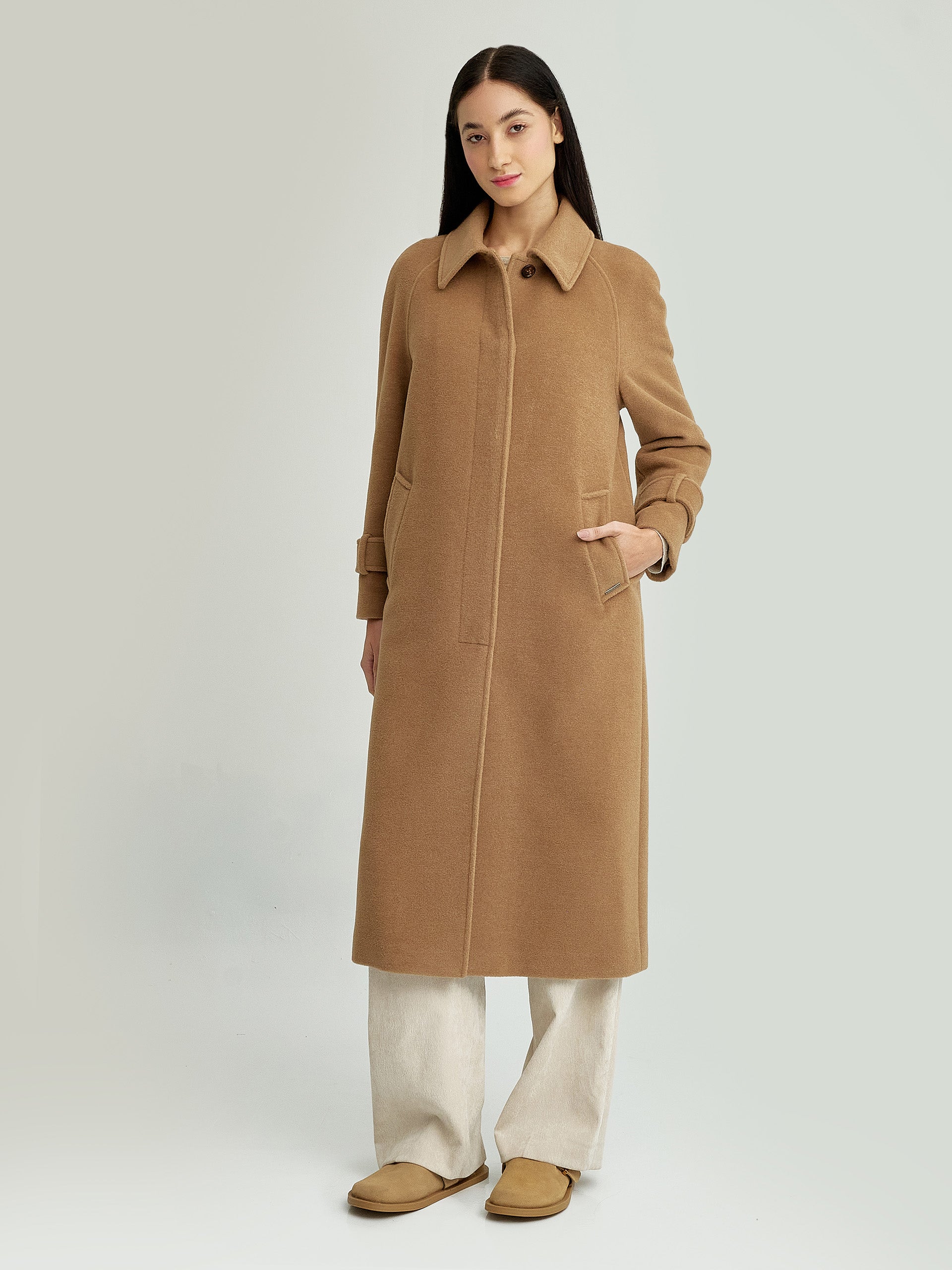 This beautiful overcoat in natural tone stands out for its carefully crafted design. The collar, which harmonizes perfectly with the length of the overcoat, adds a touch of elegance. In addition, it has pockets on the sides for greater functionality. The You overcoat offers a combination of softness and durability. | Predominant material: Baby Alpaca / Wool