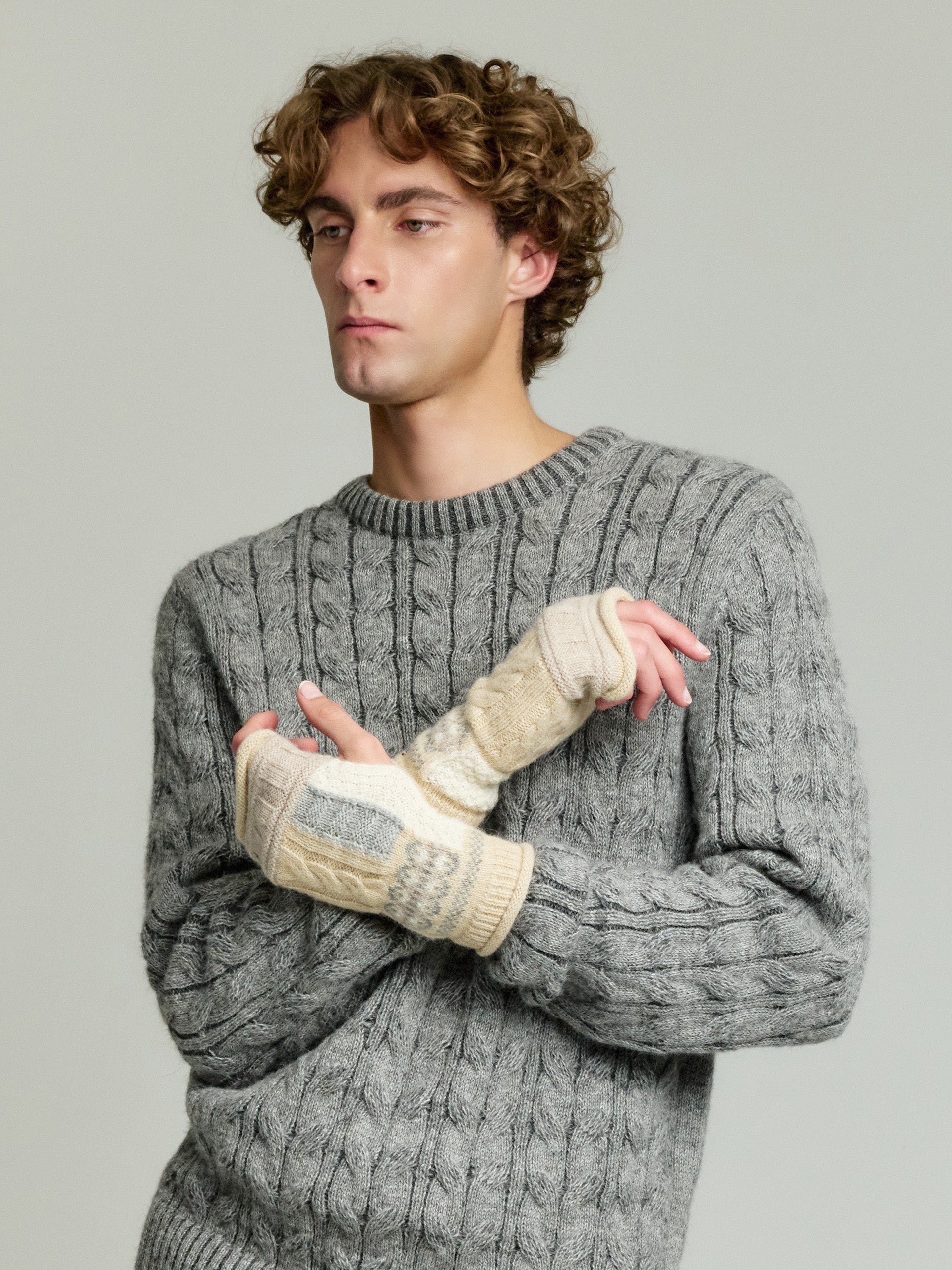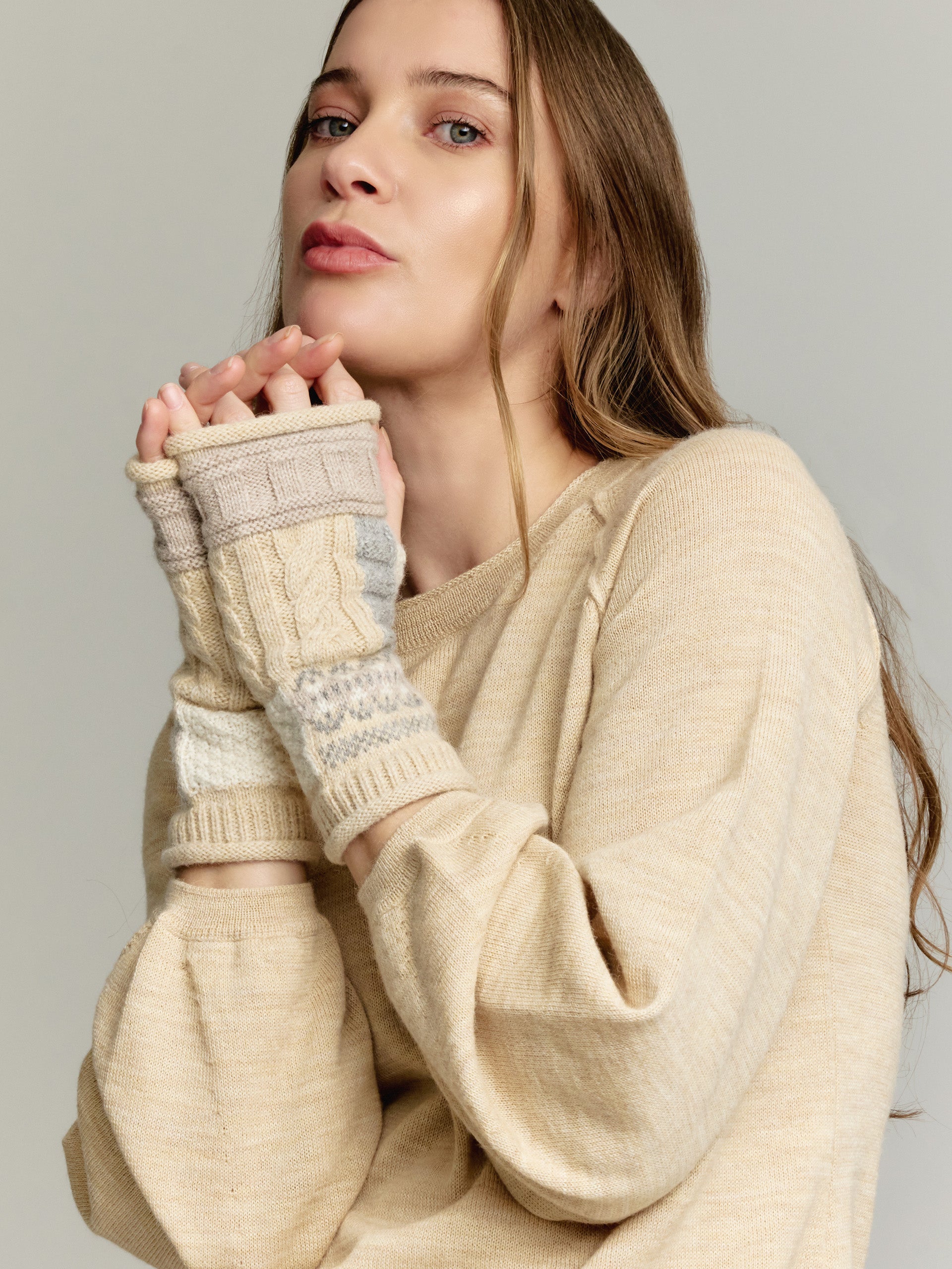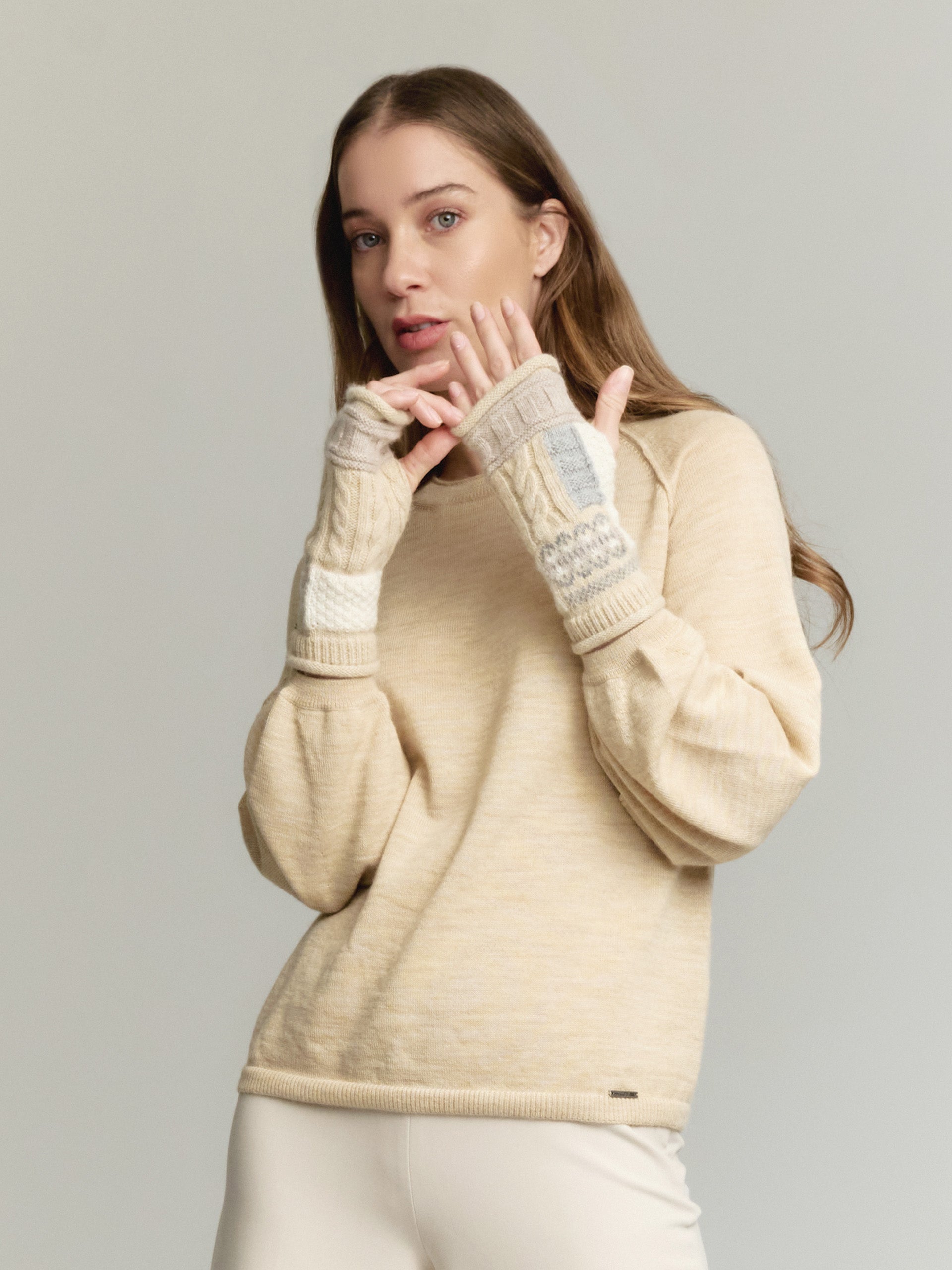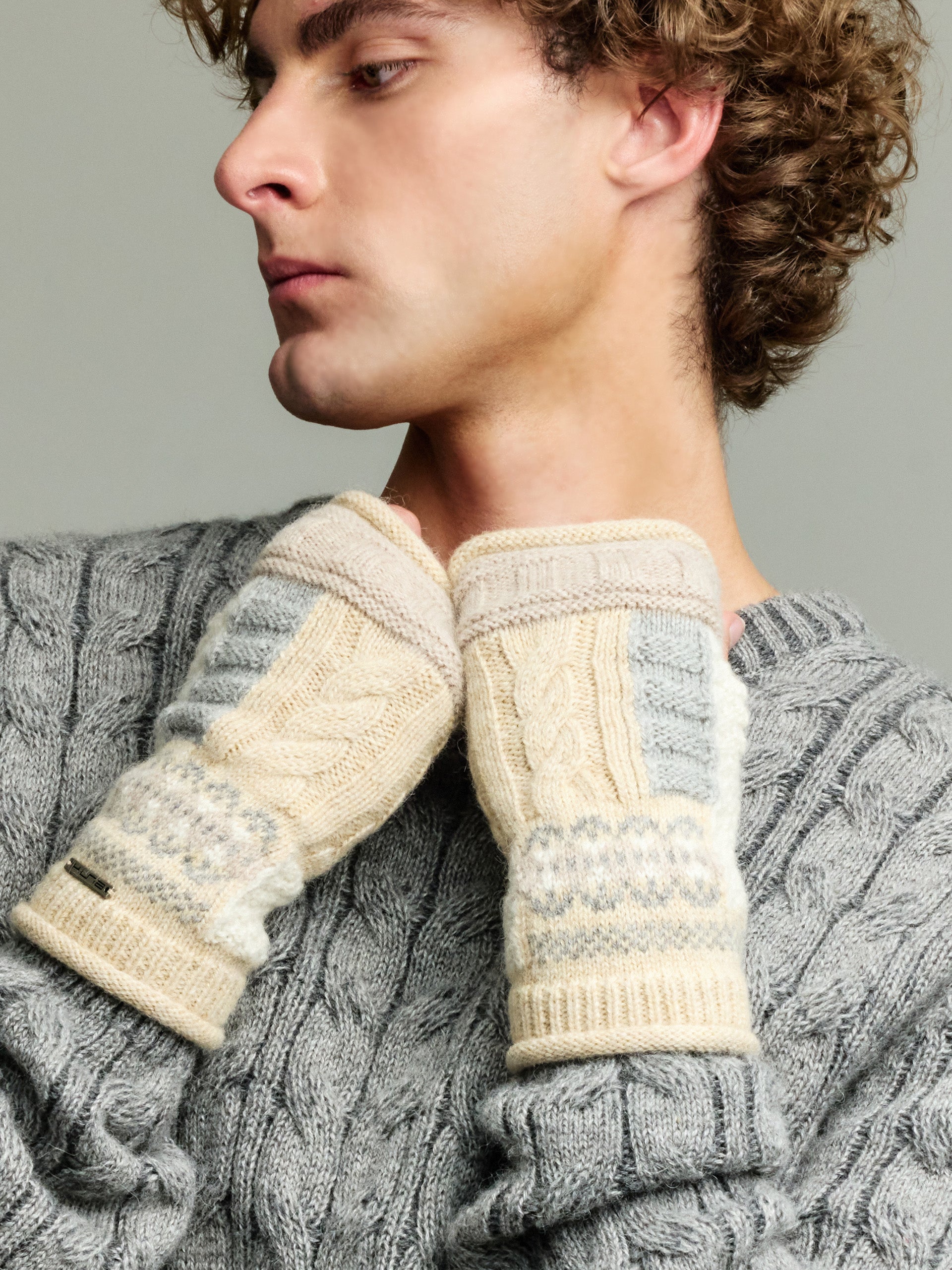 Our Yourself knitted gloves, made with 100% baby alpaca yarn, offer a warm way to look stylish. Embellished with a warm color combination, they are the perfect complement to add warmth and elegance to your outfit. Wear them with the matching hat for a complete and coordinated outfit. | Material predominante: Baby Alpaca