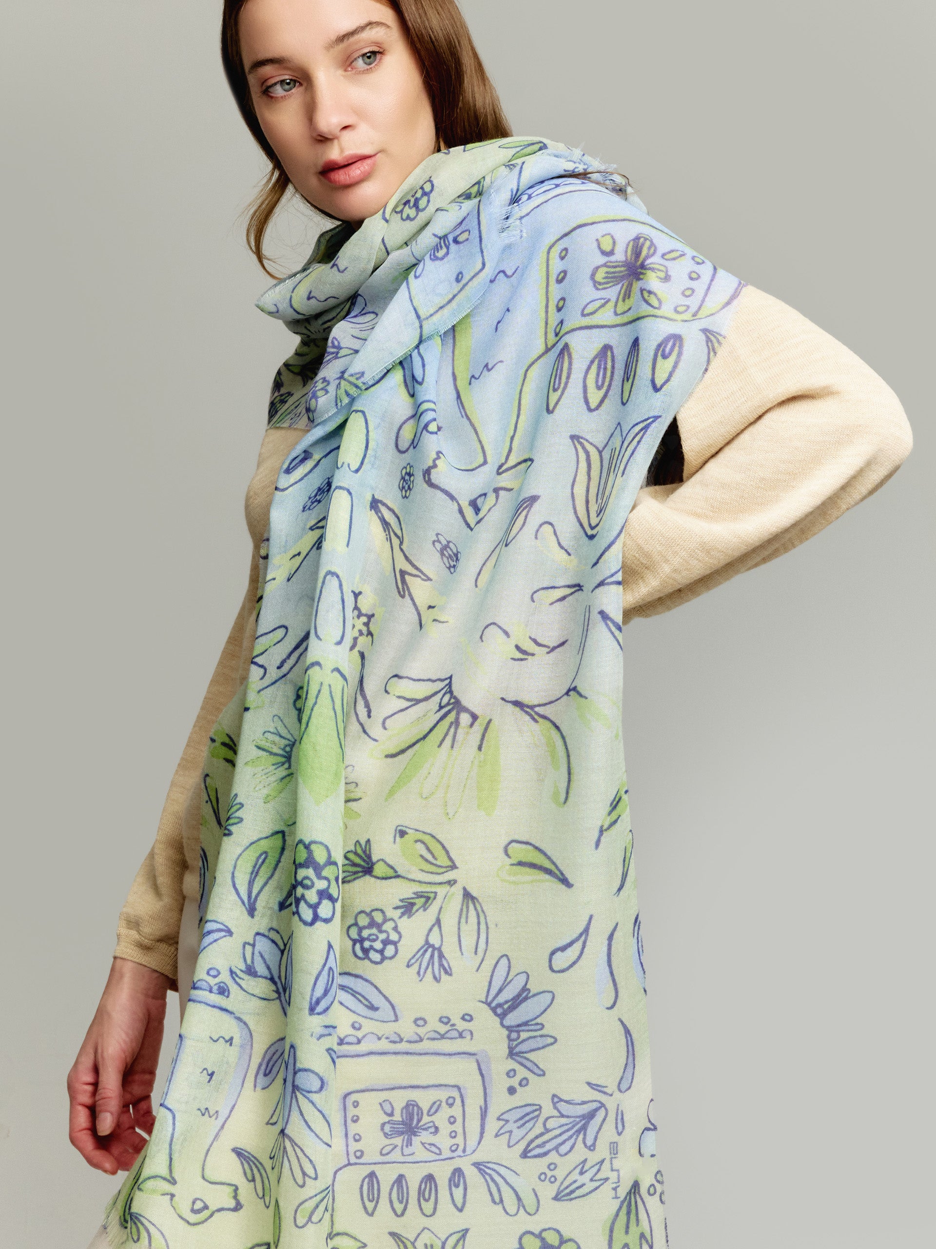 Immerse yourself in the freshness of our Yovela stole. With vivid colors and captivating designs, this accessory is made of baby alpaca and silk, a soft and lightweight combination that gives your skin a unique feel. Perfect for giving a vibrant and colorful touch to your looks, this stole adds style and comfort to your winter wardrobe. | Material predominante: Baby Alpaca