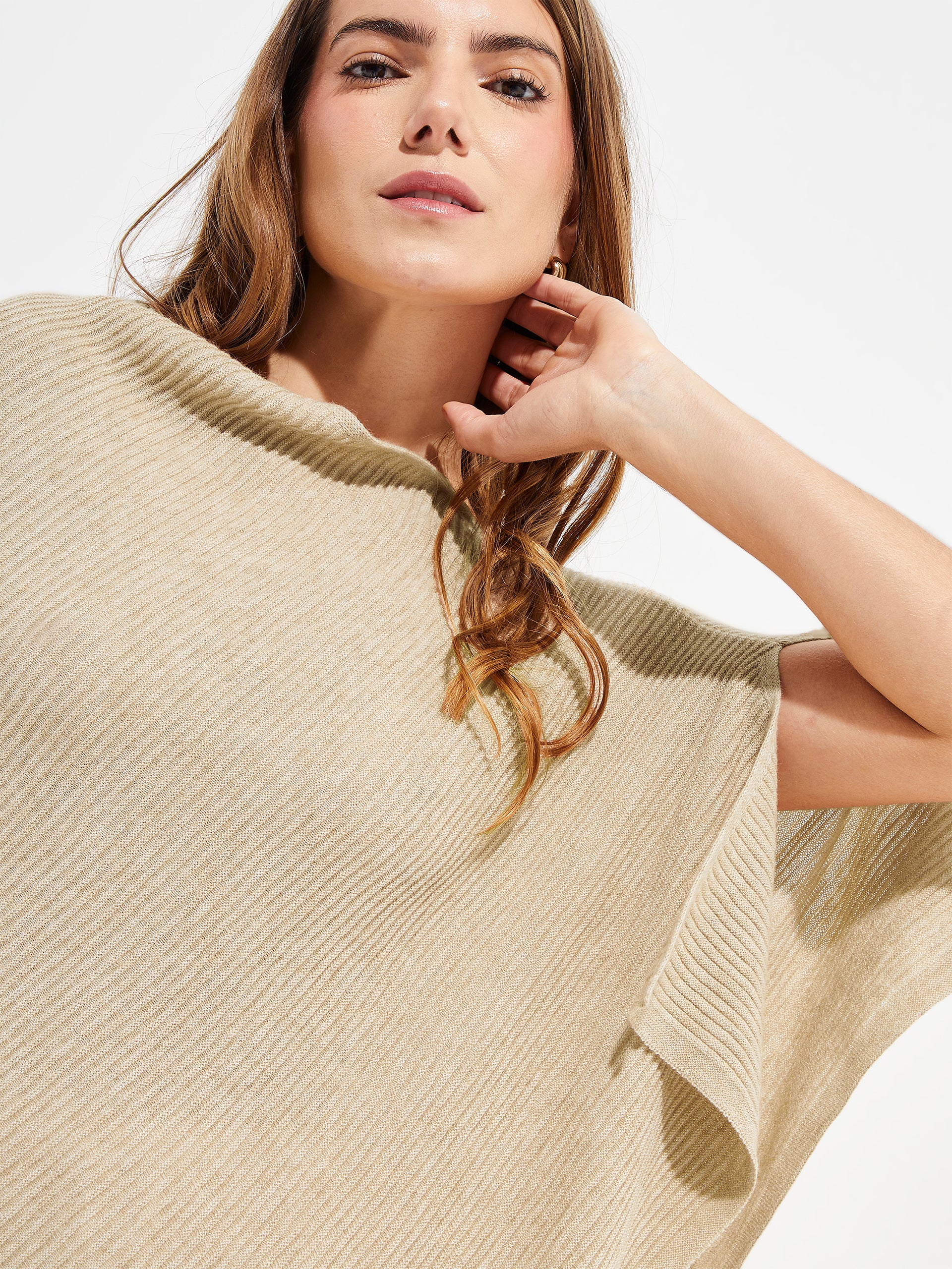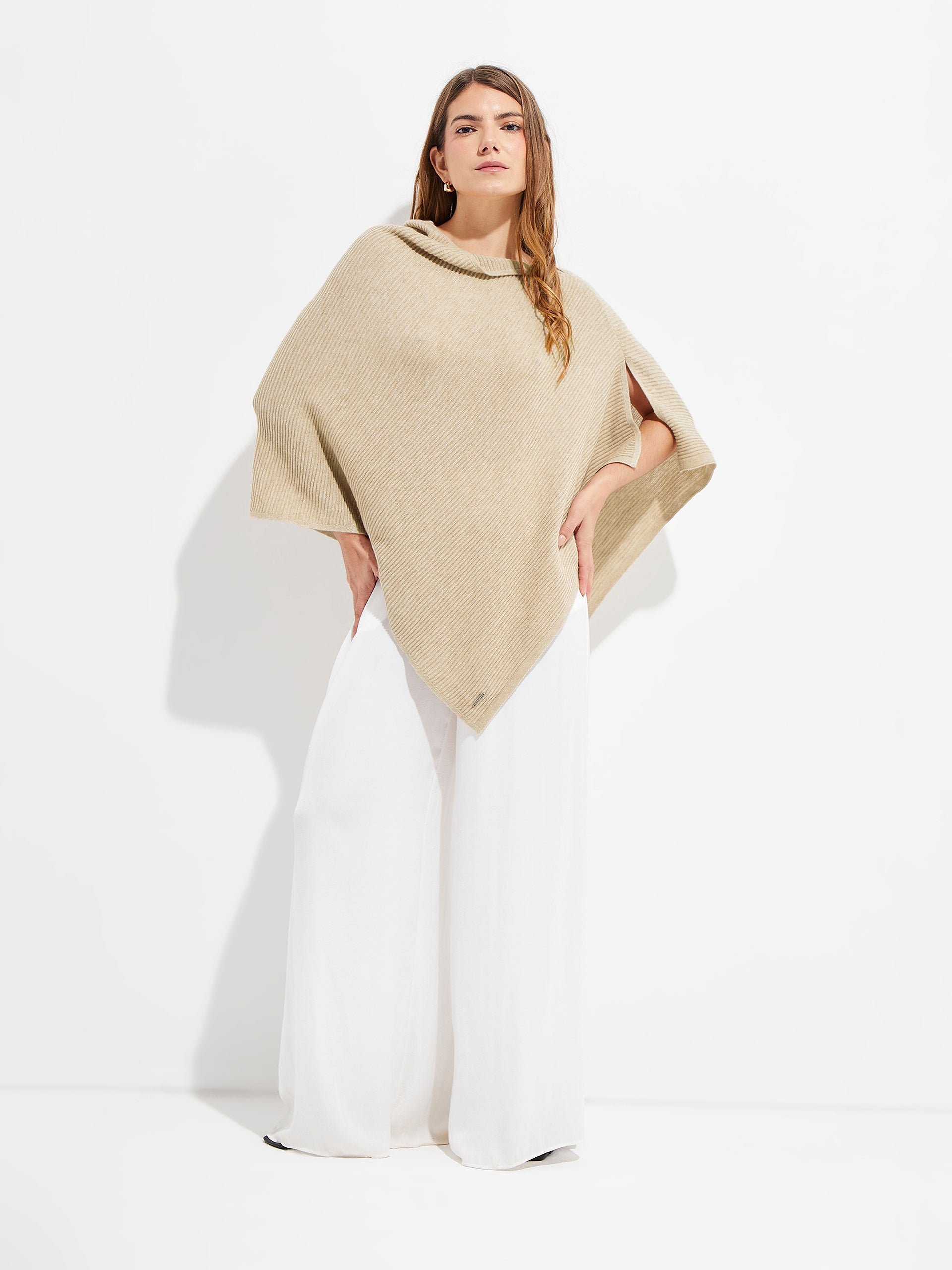 Our classic Ypanema poncho, made of organic cotton and baby alpaca, is an asymmetrical and elegant accessory for women. Available in two colors, it features an opening on the left side that adds a distinctive touch to its design. Ideal to complement any outfit, this poncho offers both style and comfort. | Predominant material: Cotton