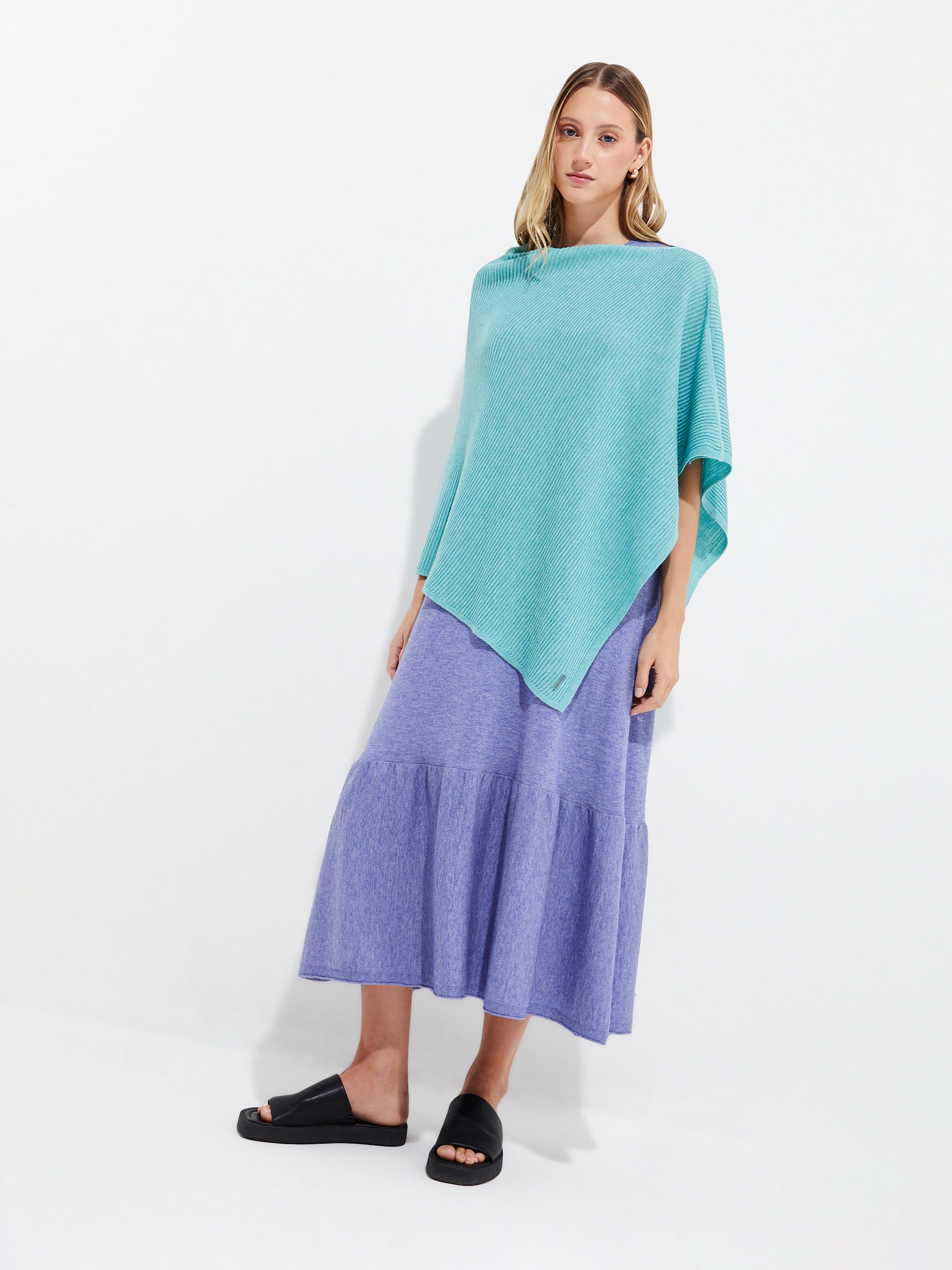 Our classic Ypanema poncho, made of organic cotton and baby alpaca, is an asymmetrical and elegant accessory for women. Available in two colors, it features an opening on the left side that adds a distinctive touch to its design. Ideal to complement any outfit, this poncho offers both style and comfort. | Predominant material: Cotton