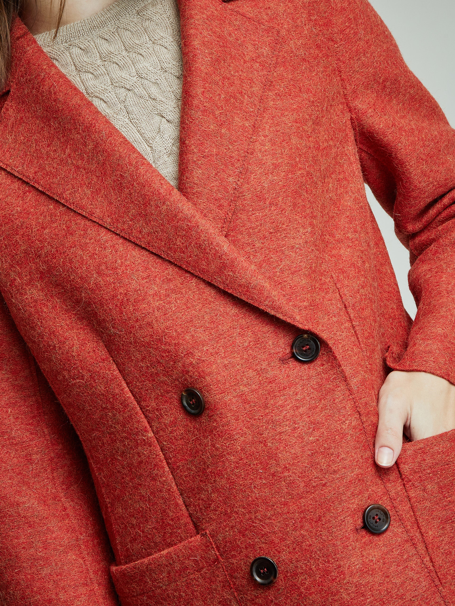 Made of alpaca and wool, this coat offers a combination of incomparable luxury and warmth. Its double-breasted design and buttons add a touch of sophistication to your style. Available in two carefully selected tones, it is the perfect item to enhance any outfit whether for a formal or casual occasion. Dare to stand out! | Predominant material: Alpaca