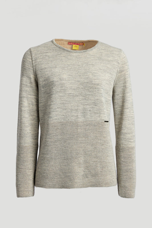 Round-neck sweater made with baby alpaca yarn and silk. Comfortable cut and lightweight fabric, ideal...