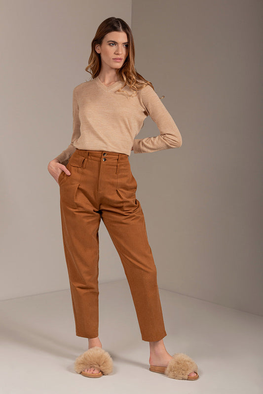 The alpaca huacaya fur, sophisticated and elegant embellishes the essential design of our new Uerta...