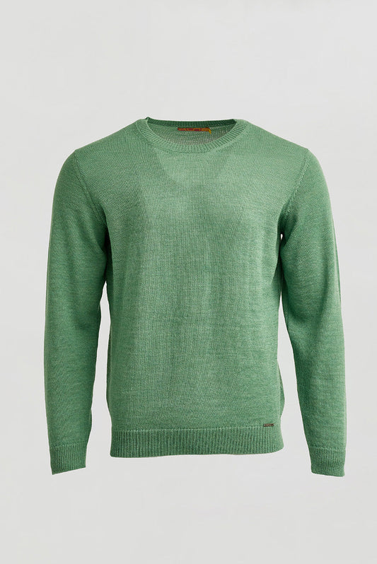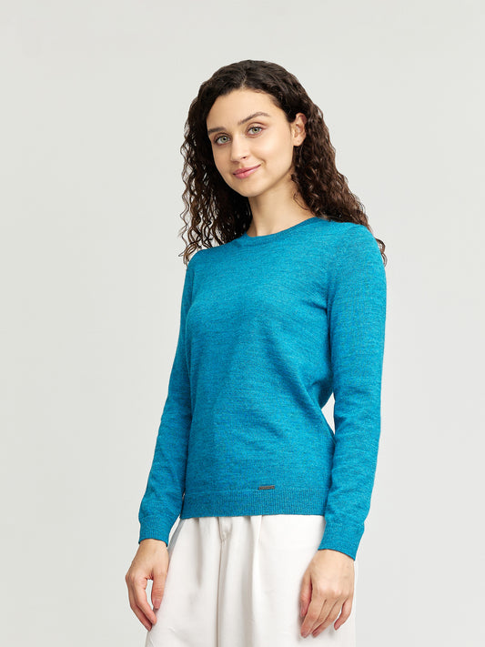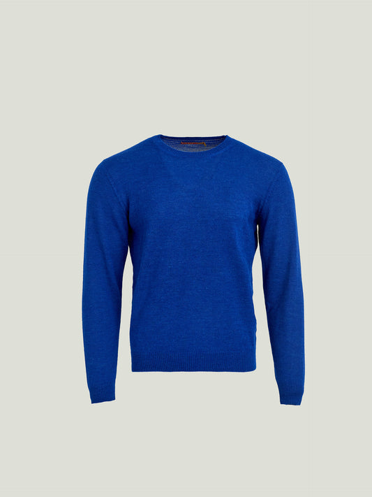 Alaska sweater in blue tone, designed in a solid color with a round neckline. The...